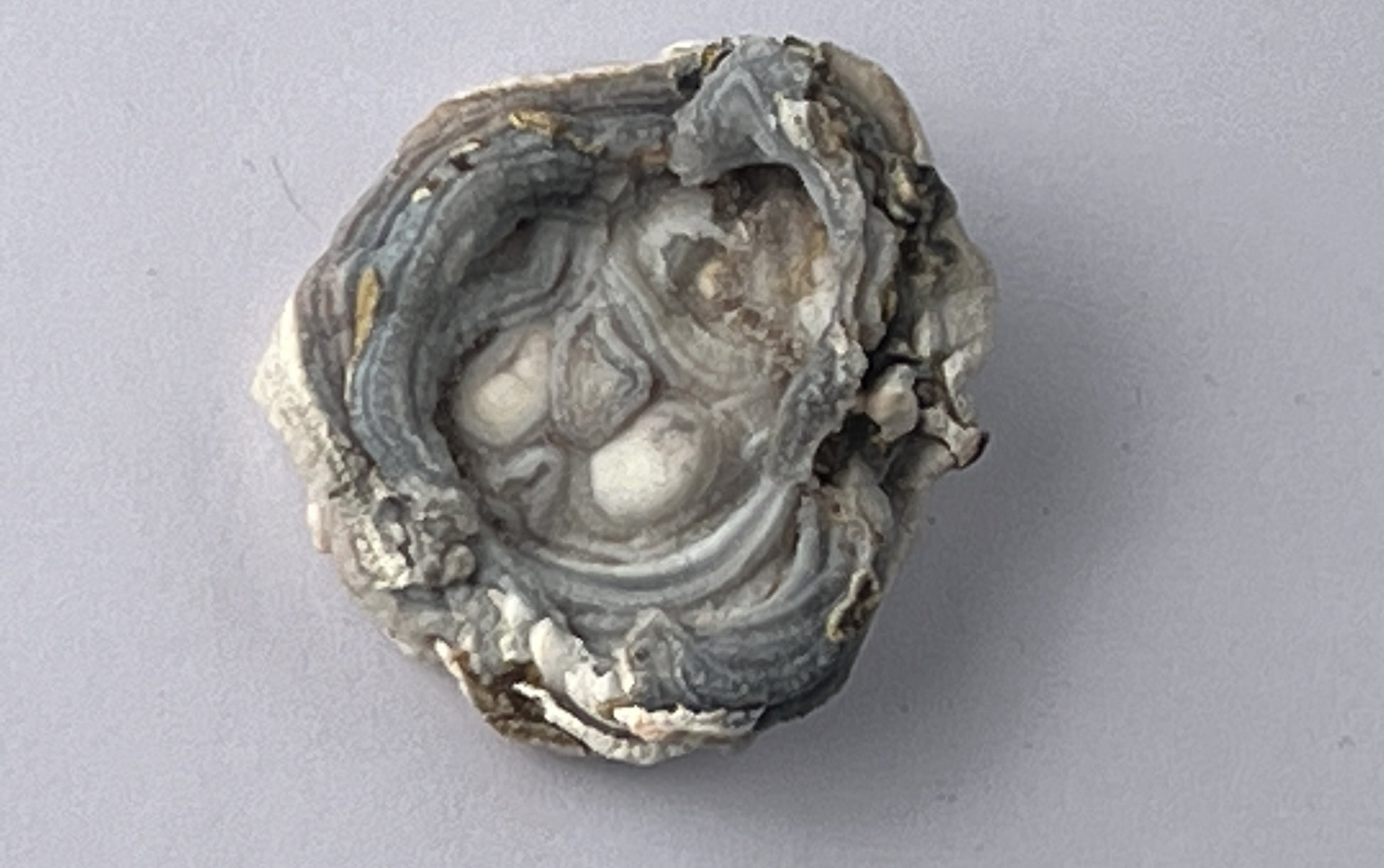 Agate druzy forms when agate, a type of chalcedony, has a druzy surface covered in small quartz crystals. It often displays colorful patterns. This one weighs .80 oz and measures 2" x 1.5"