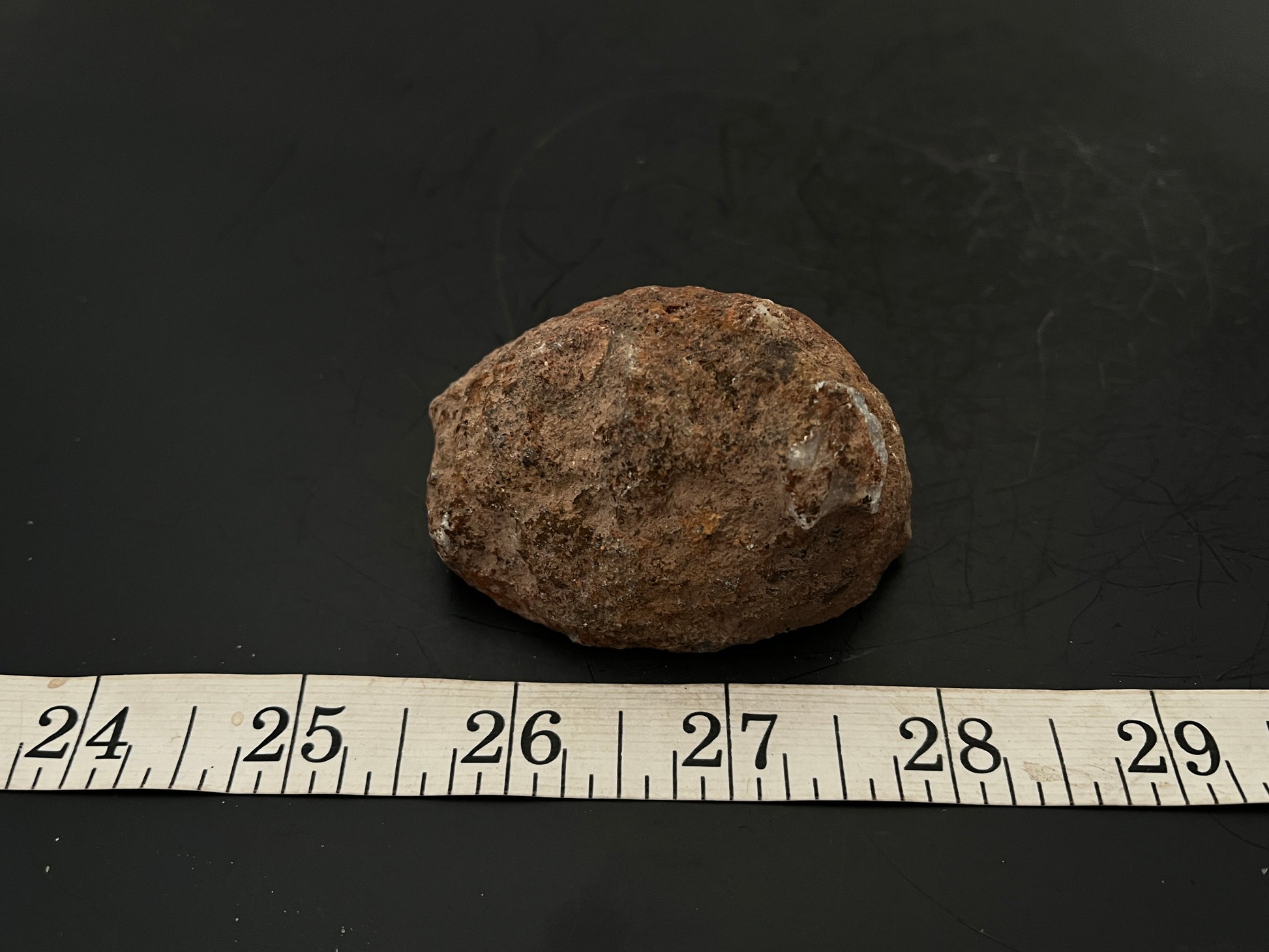The exterior of Agate Geode Half 069 is a beautiful bi-colored display, encompassing a quartz-filled cavity surrounded by agate. With measurements of 2.5" x 2" and a weight of 4.68 ounces, this specimen is a remarkable example of agate.