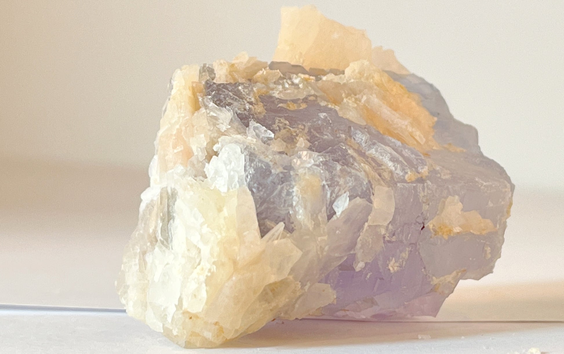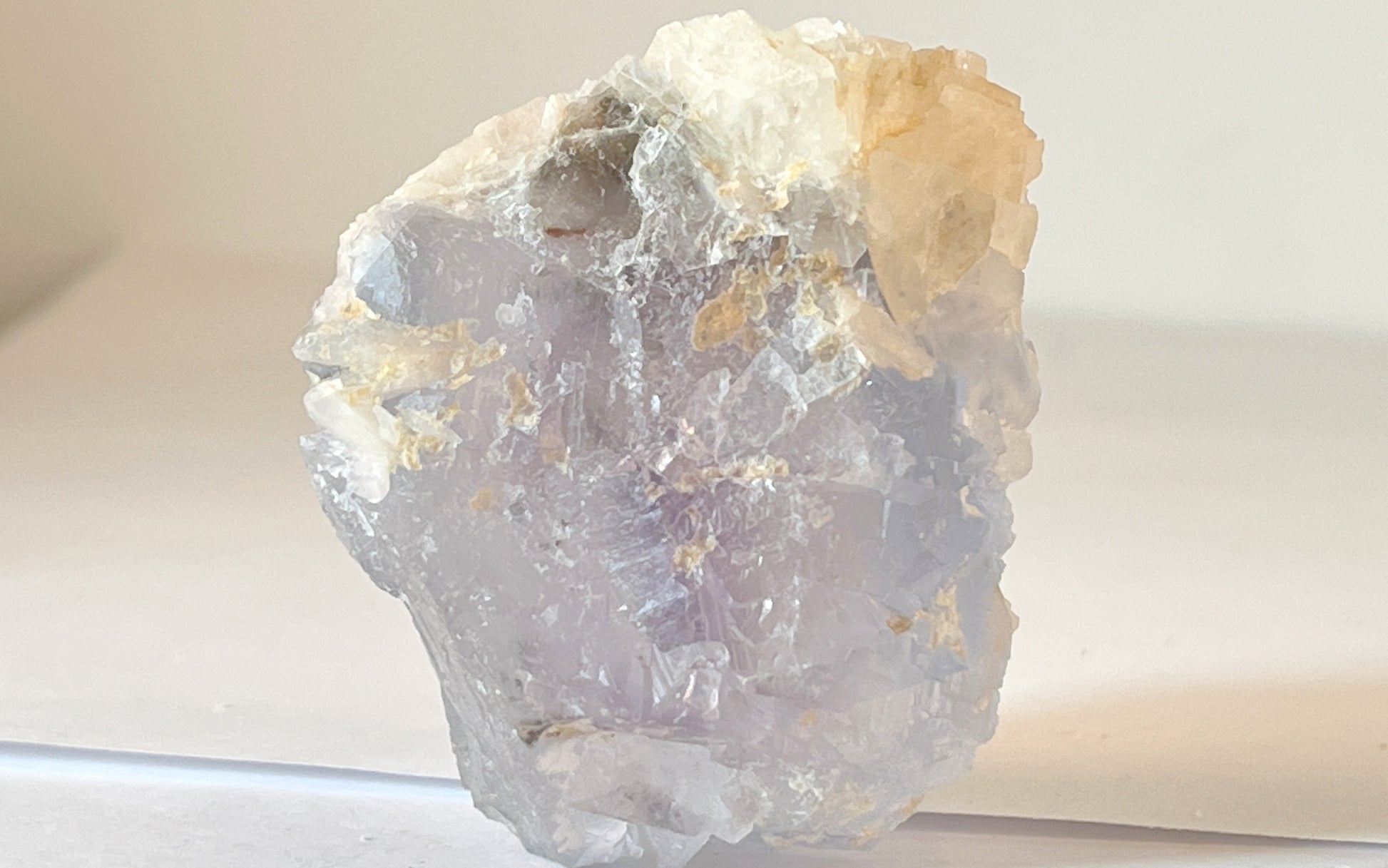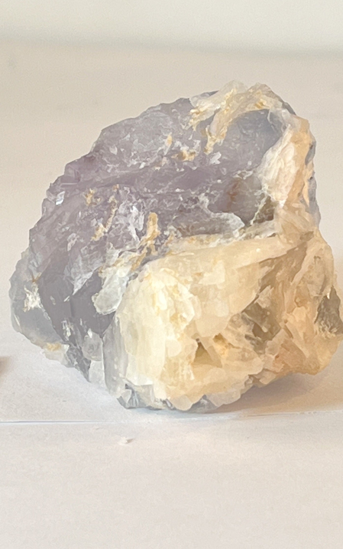 This rare specimen from Bingham, New Mexico features pale blue fluorite and creamy barite. It is an ideal piece for those looking to add visual and scientific value to their collection. Its distinct coloring and interesting forms provide an interesting contrast compared to more traditional specimens. 3.11 oz, 1.75" x 1.25"