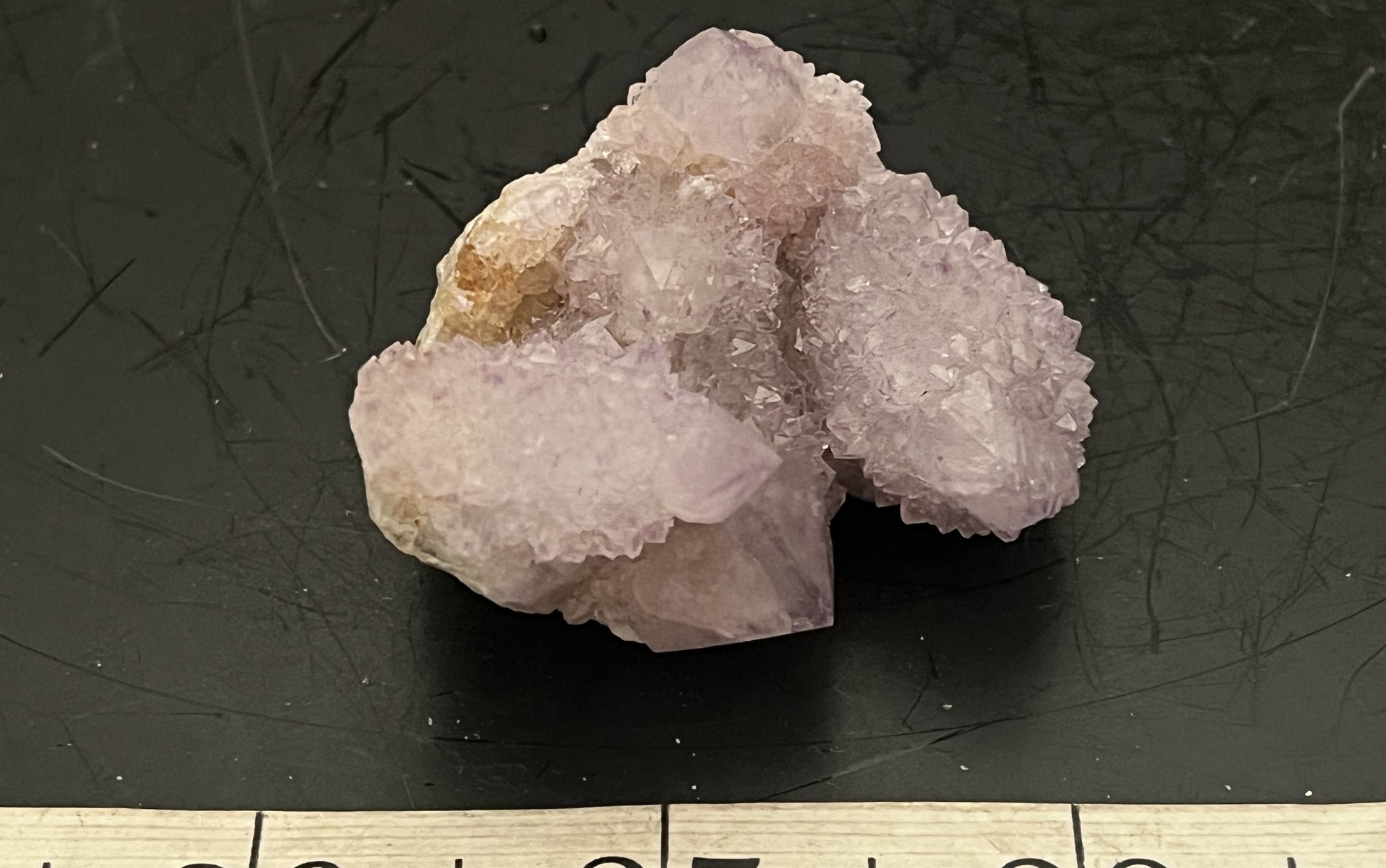 This charming cactus amethyst, also called Spirit Quartz, boasts several candle-flame terminations. Weighing 1.94 oz, it stands 1.5" tall and measures 1.75" across, making it a petite yet striking crystal and a prime example of cactus amethyst.