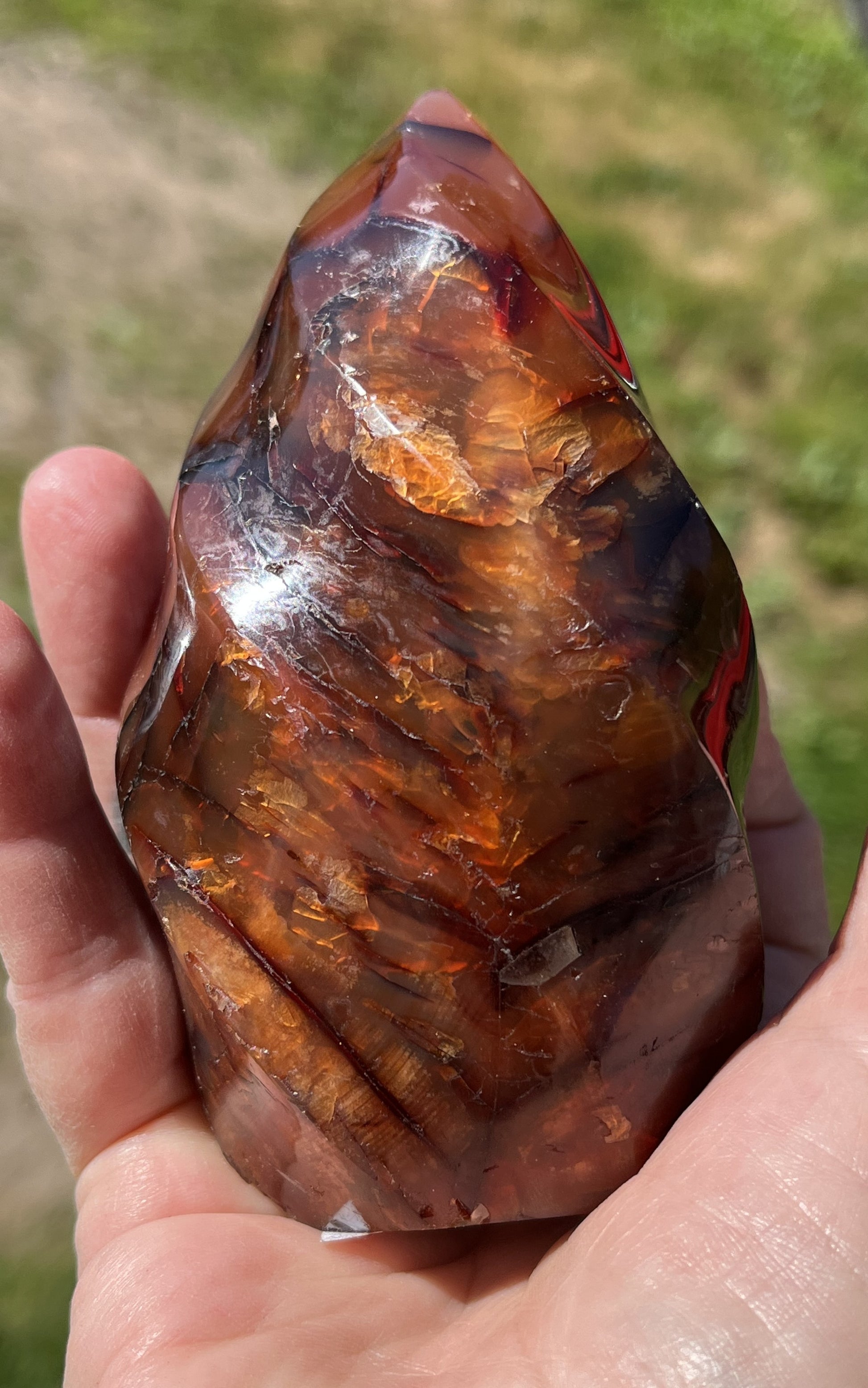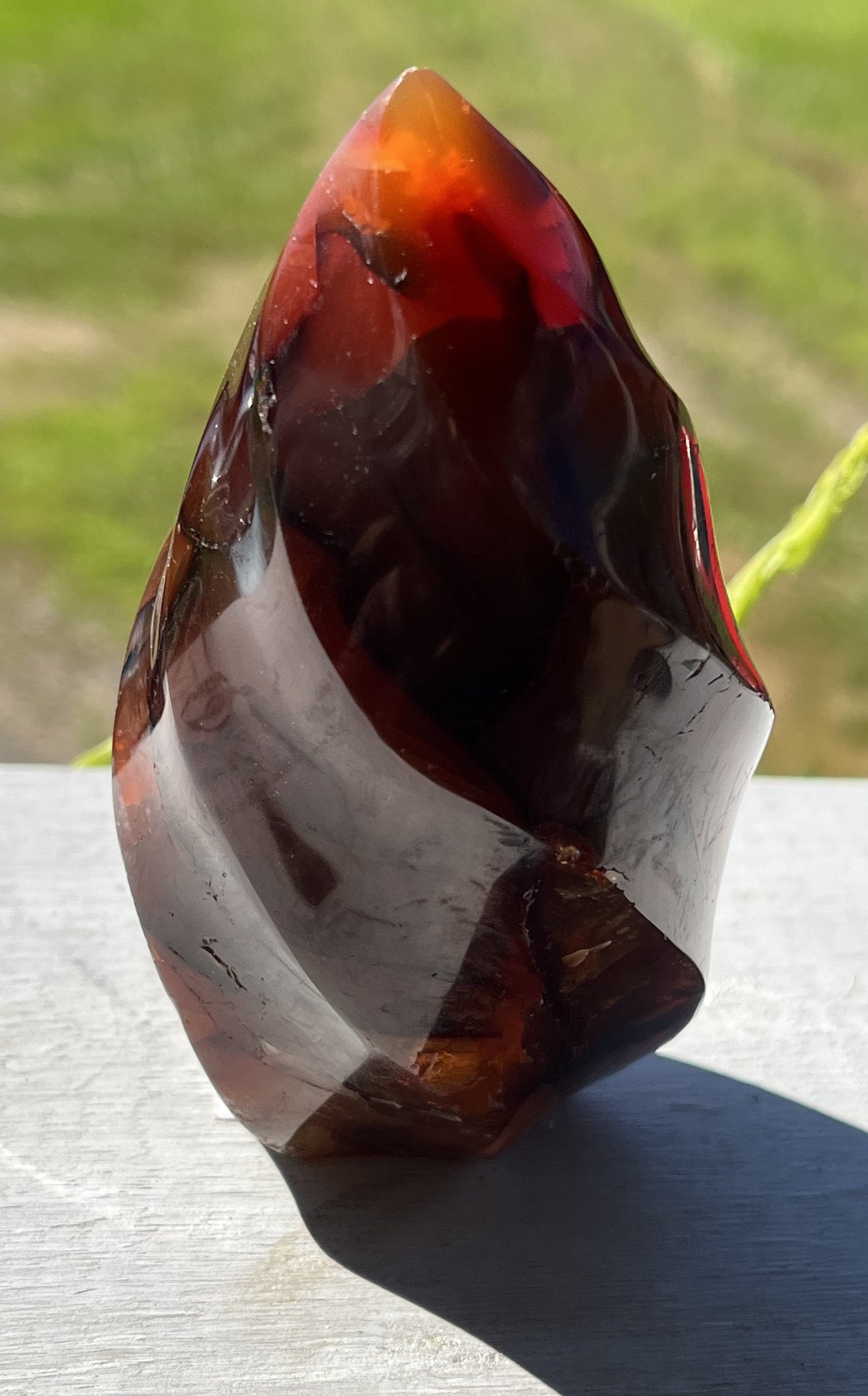 Nothing beats a Carnelian flame - this mineral is perfectly colored for a flame shape. Deep and rich colors are highlighted by the swirl and sway of the carved sides. 4.25" 14.10 oz