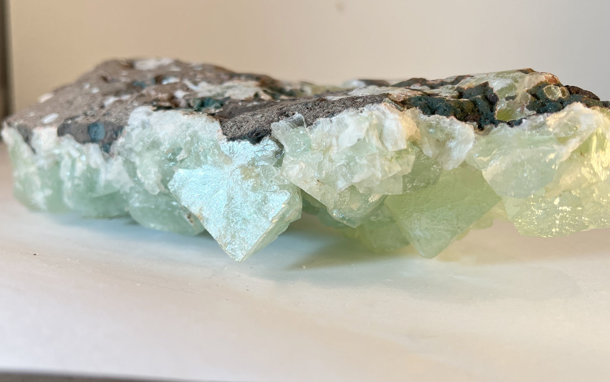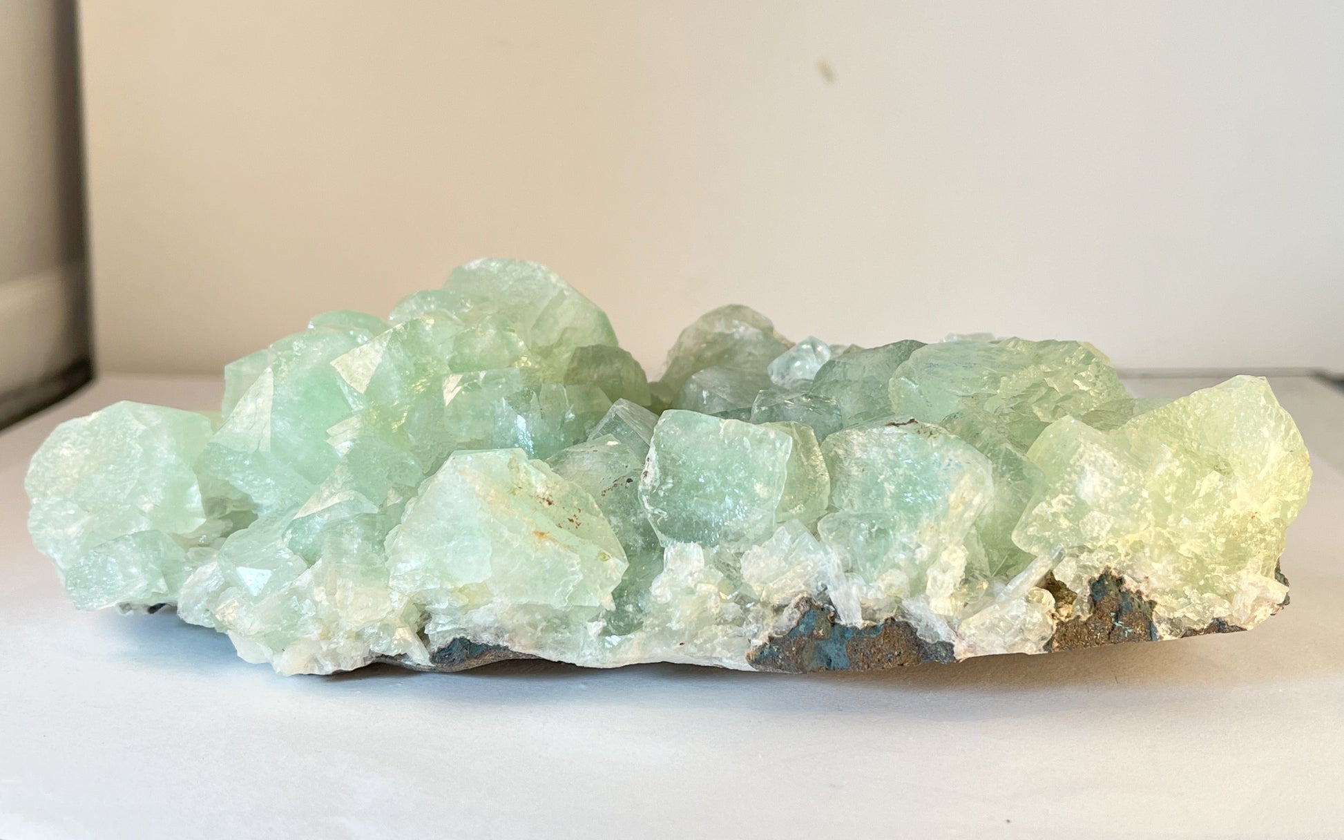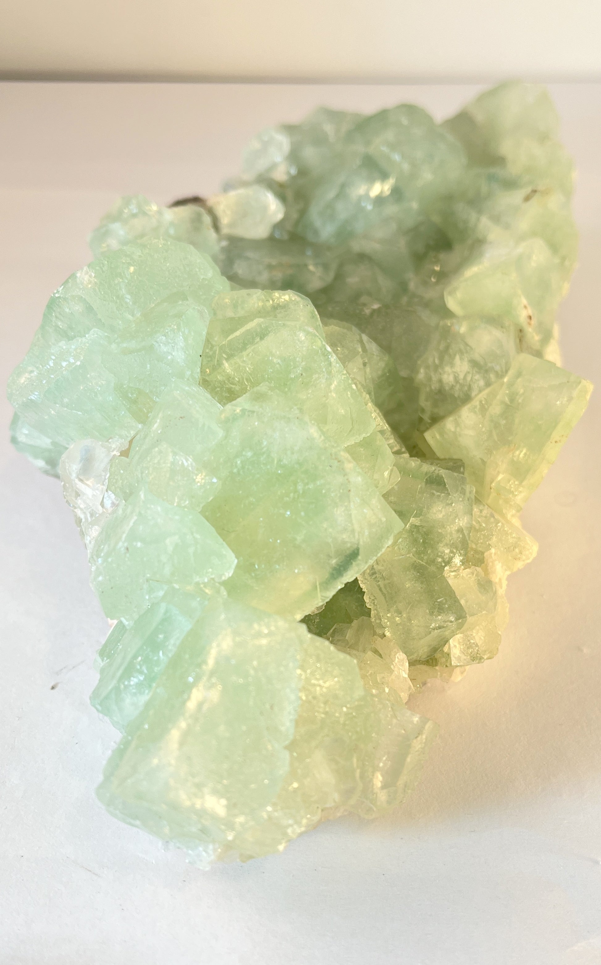 Green Apophyllite is a rare form of the mineral family. With a mint green hue and high clarity, these terminated crystals make for a stunning addition to any collection. This variety of apophyllite has a distinct and unique energy that provides a peaceful and calming effect. Weighing 1.38 lbs, it measures 7" x 4"