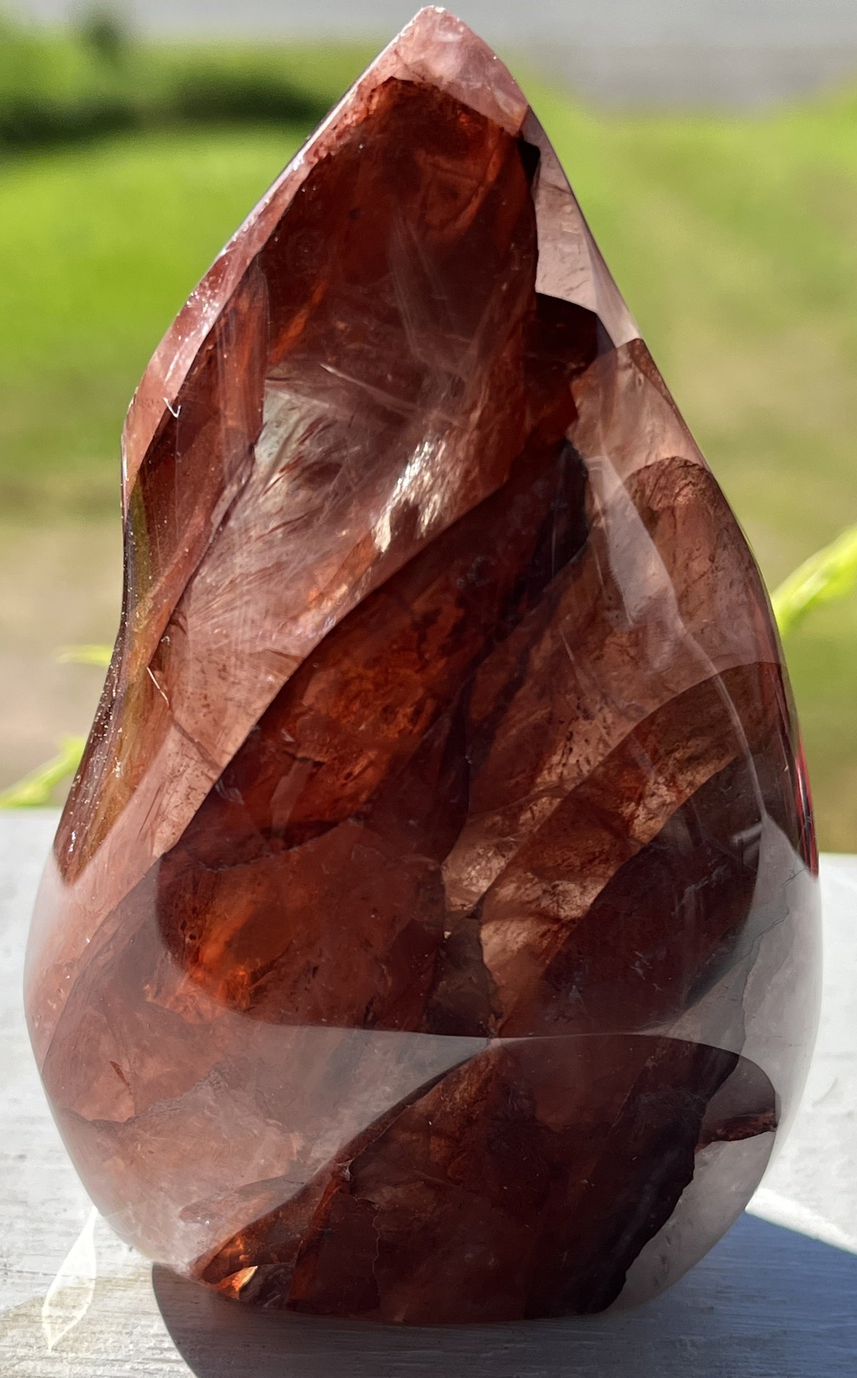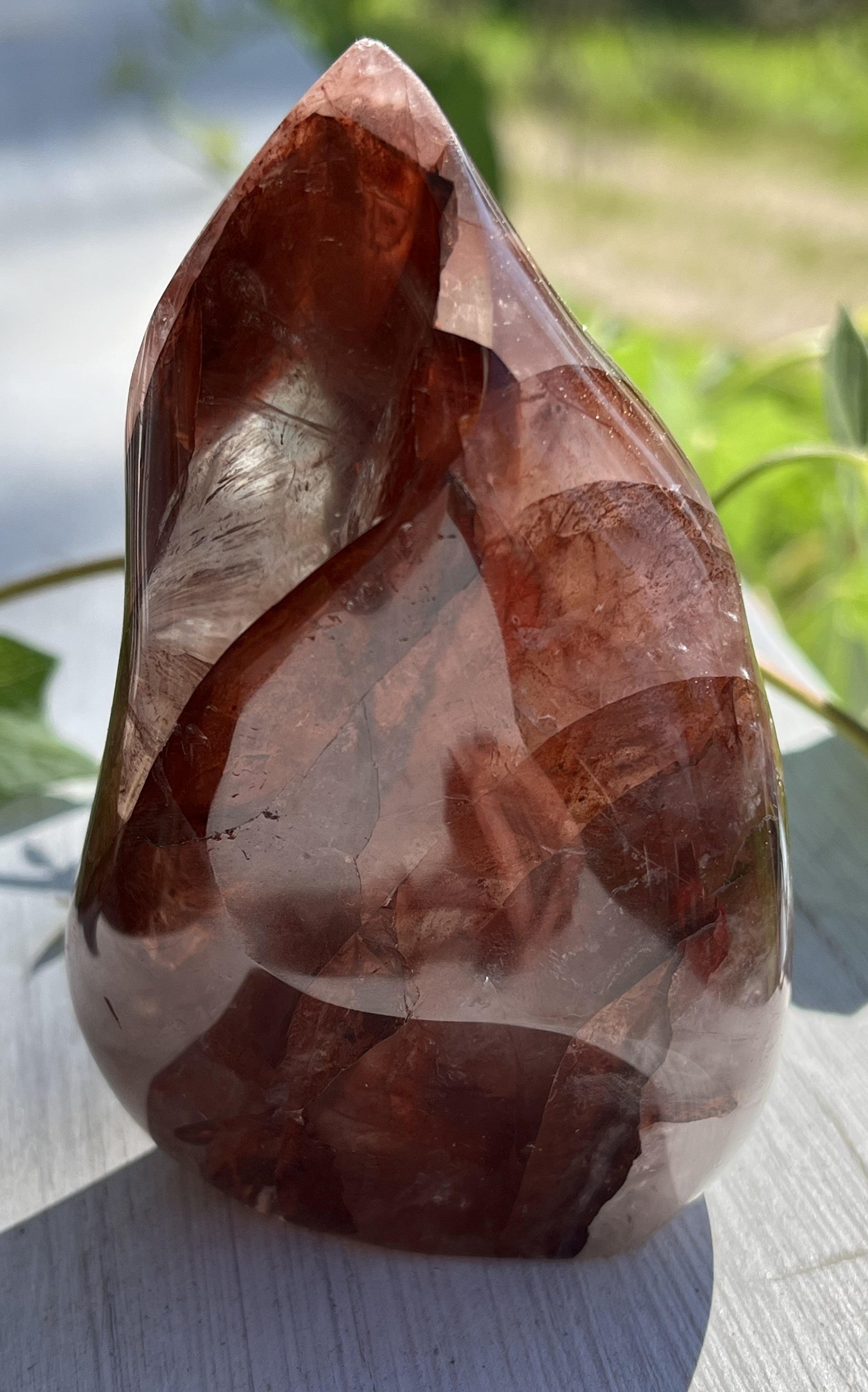 Another mineral well suited to the flame shape - you can see the translucence of the quartz and the inclusions as you view it from each side. 3.75" 8.88 oz