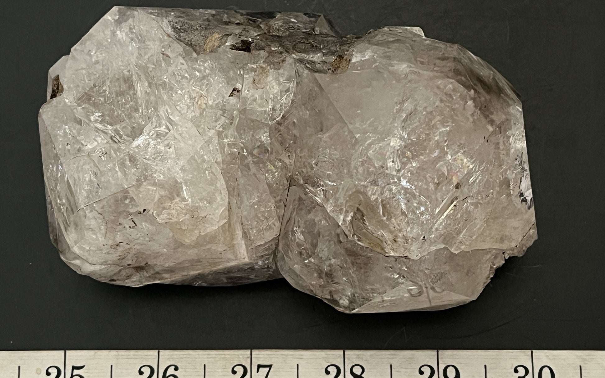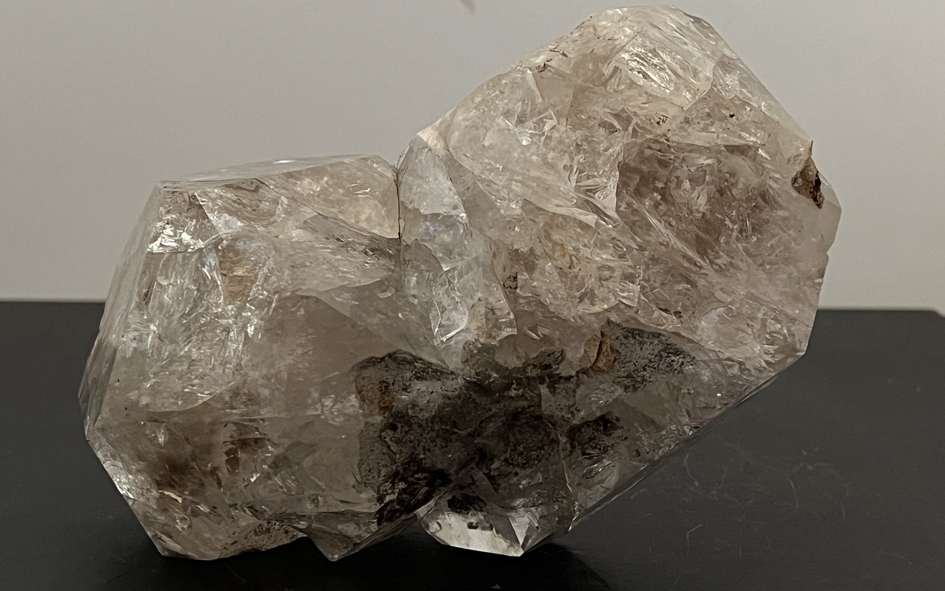 This Herkimer Diamond cluster is completely original, having been formed over 450 million years ago in a goonie pocket discovered in 2023. This stunning double cluster is 5" and weighs 1.64 lbs., exhibiting excellent luster despite its typical goonie matrix pitting.