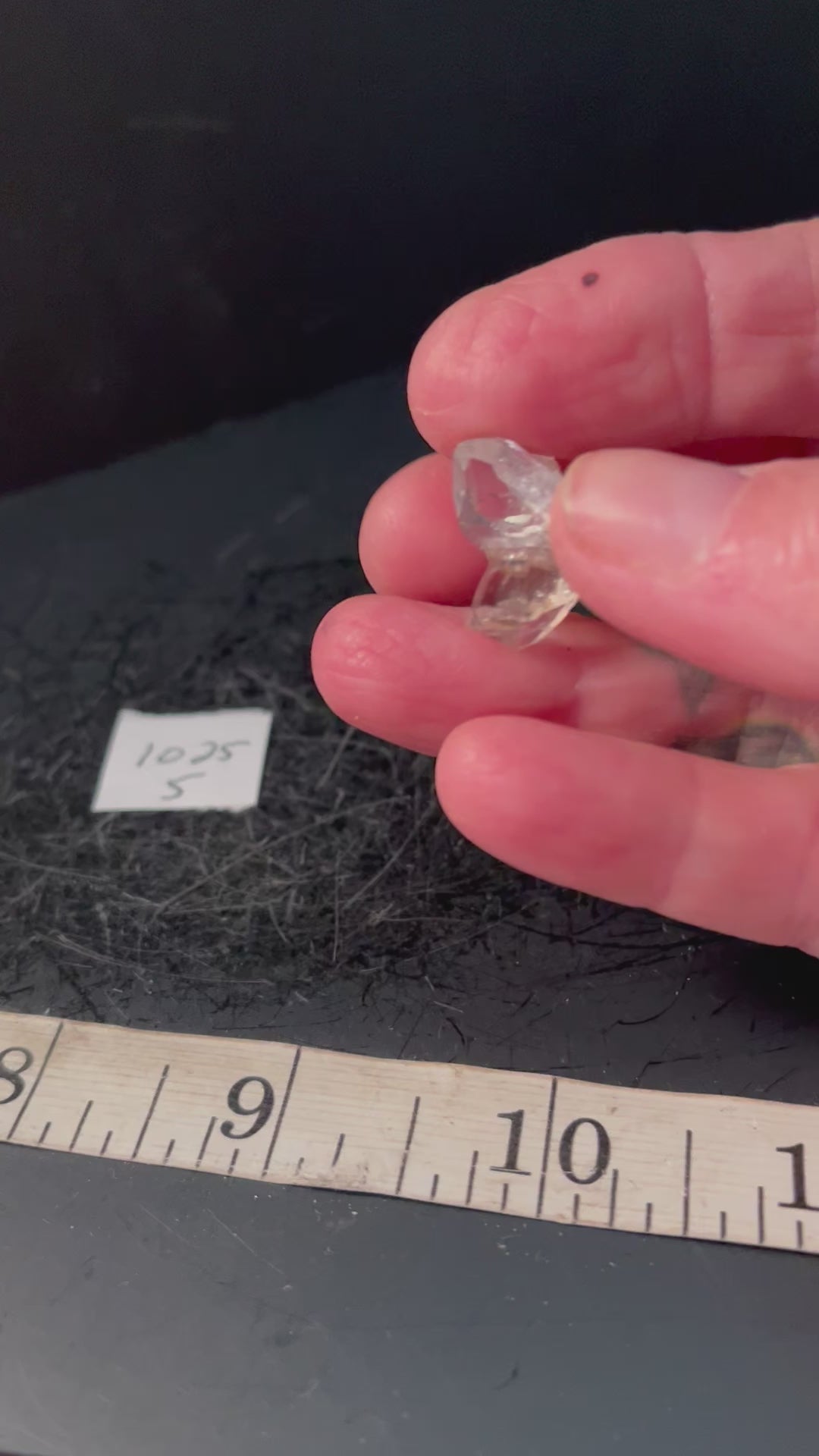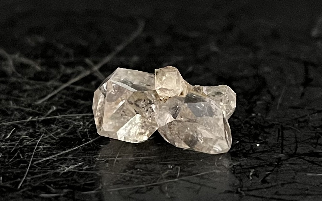 A grouping of 4 perfect crystals perched upon a chip of drusy. The crystals are so clear you can see the drusy right through the tips.