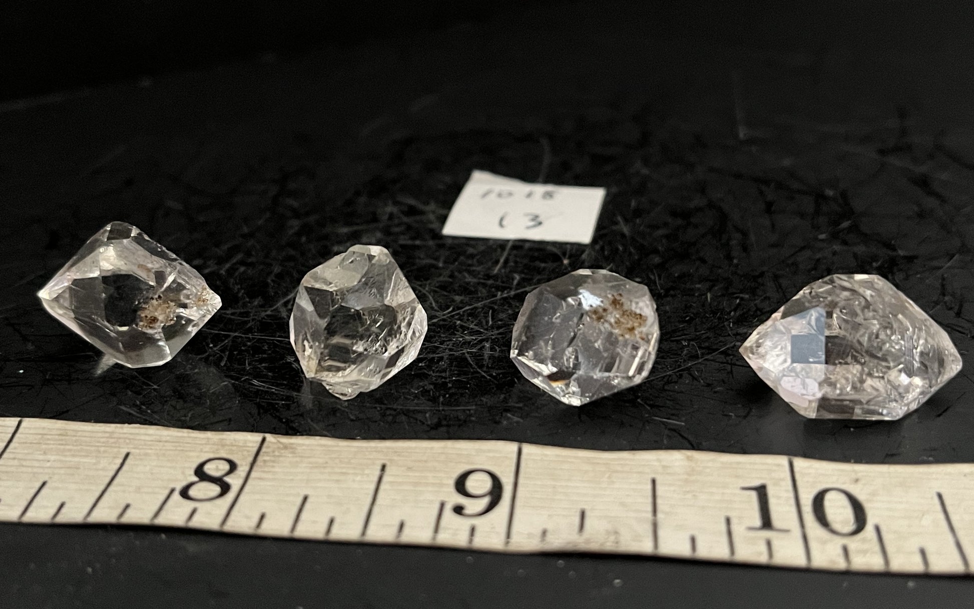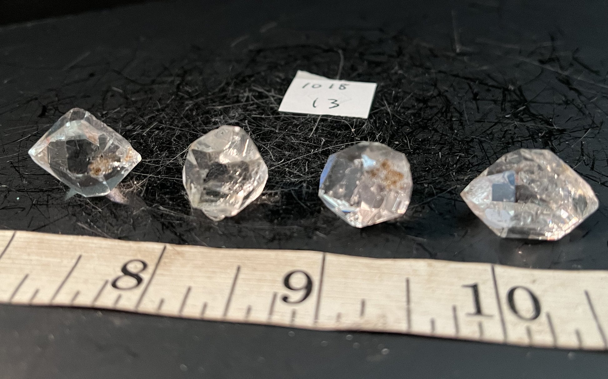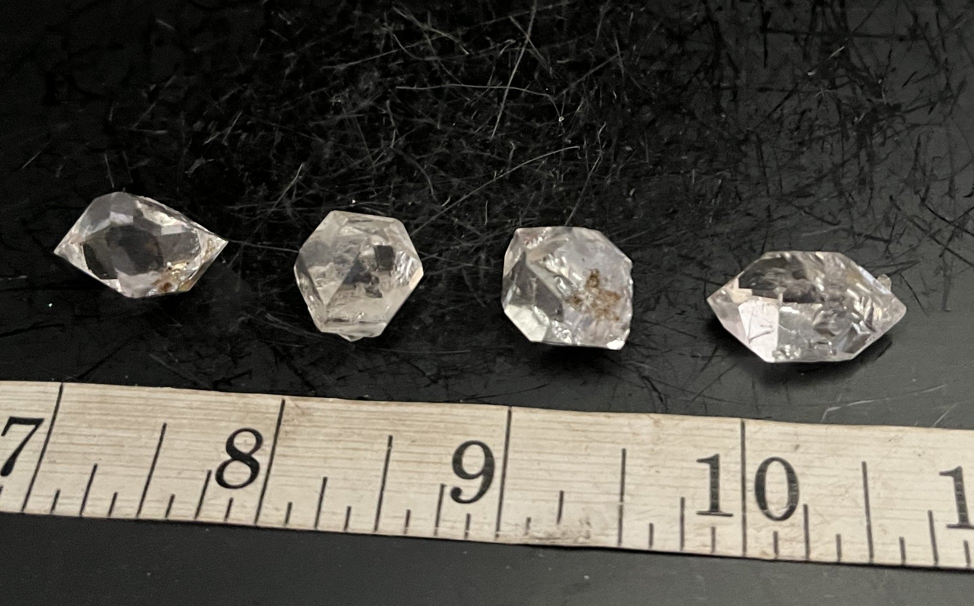 This lot contains four A-grade Herkimer Diamonds, each with remarkable clarity and luster, though some may have a few touchpoints or internal fissures.