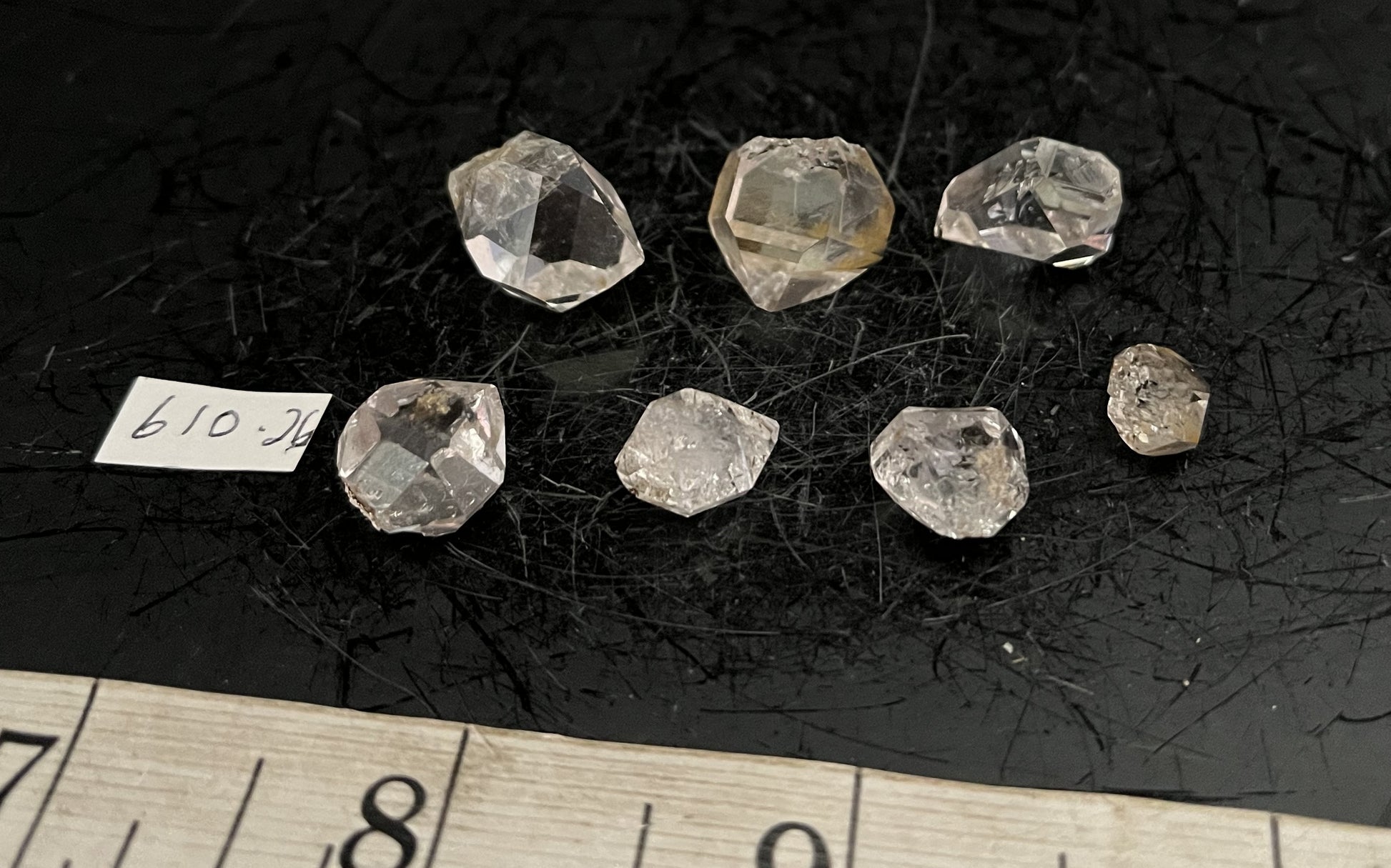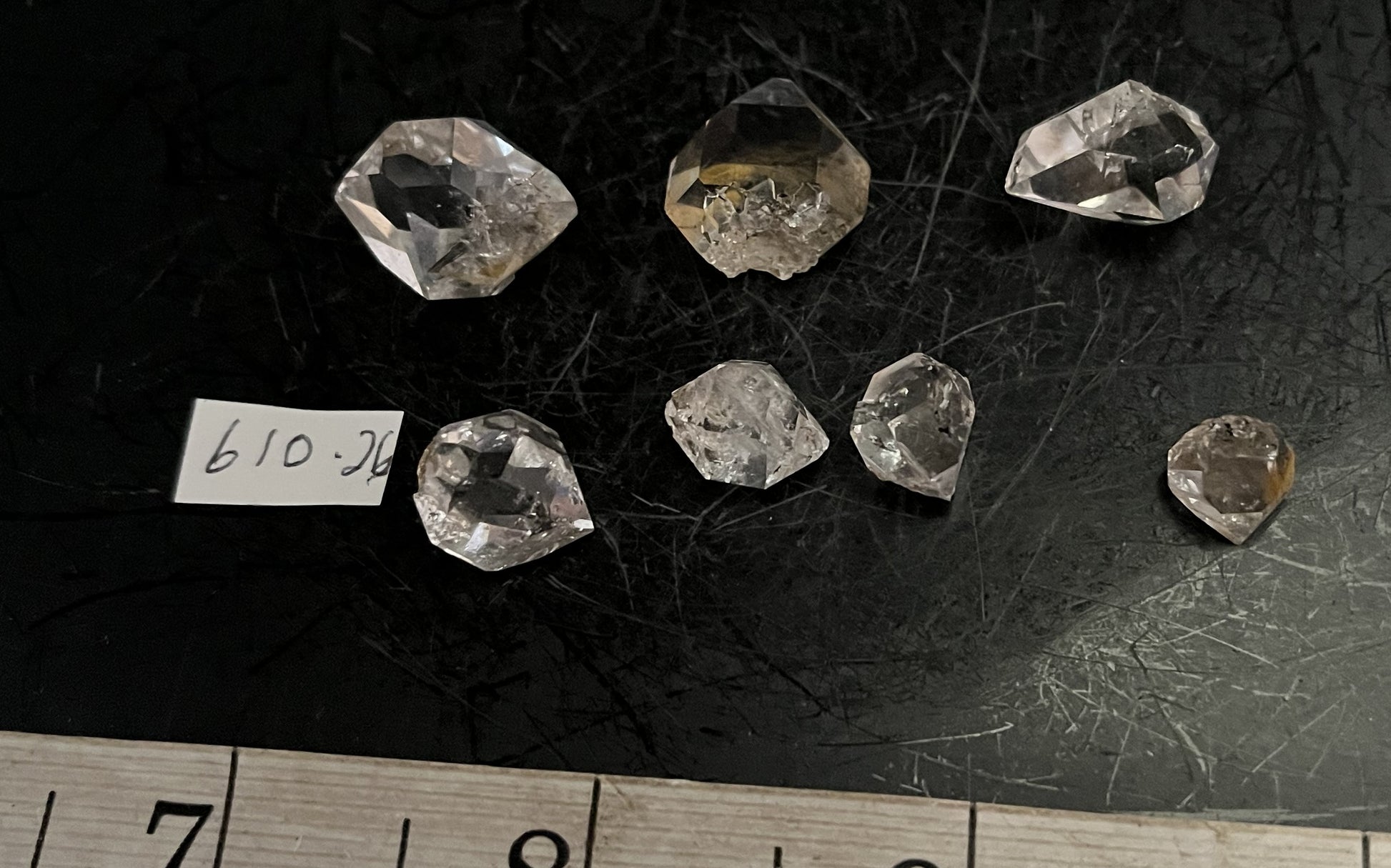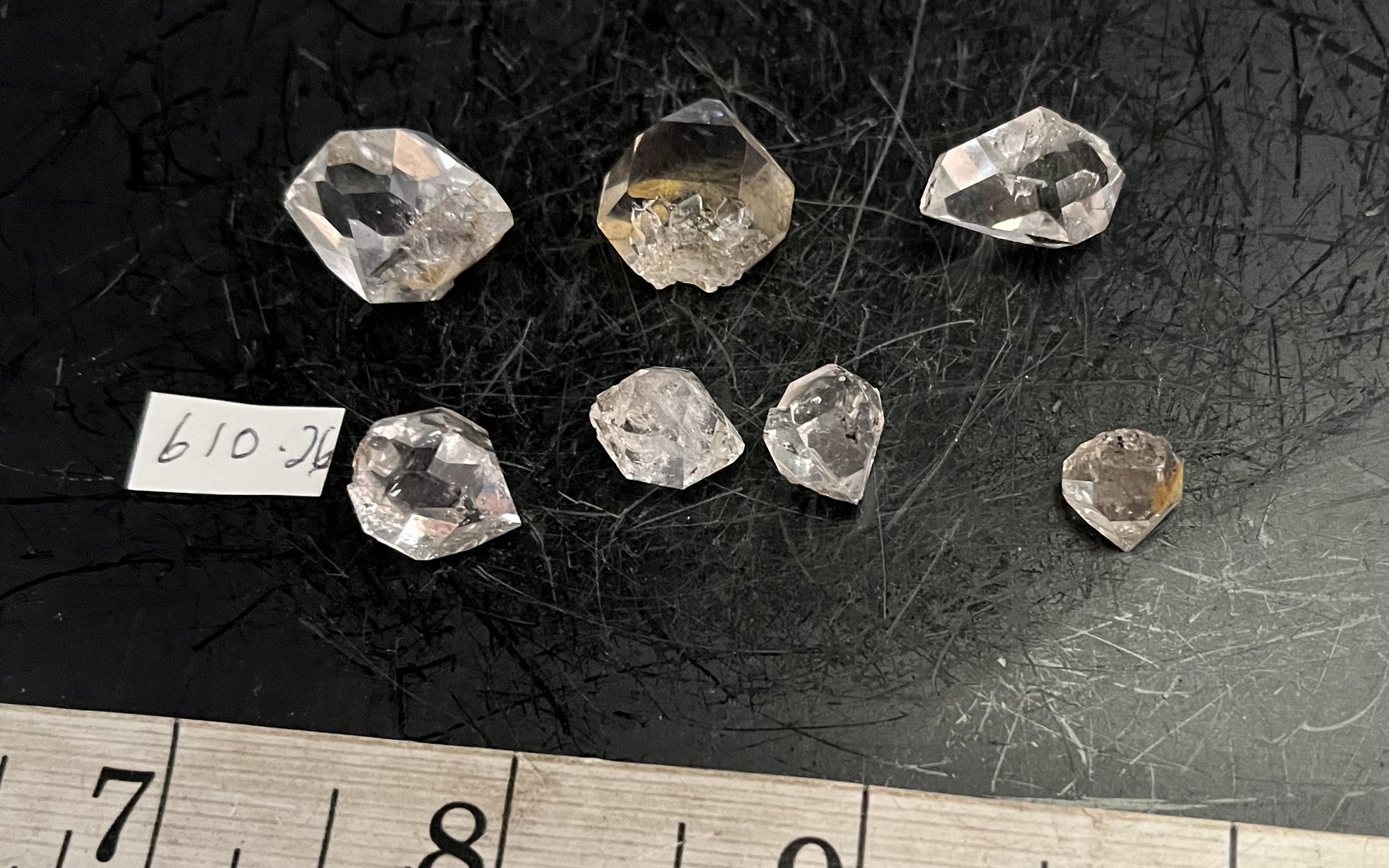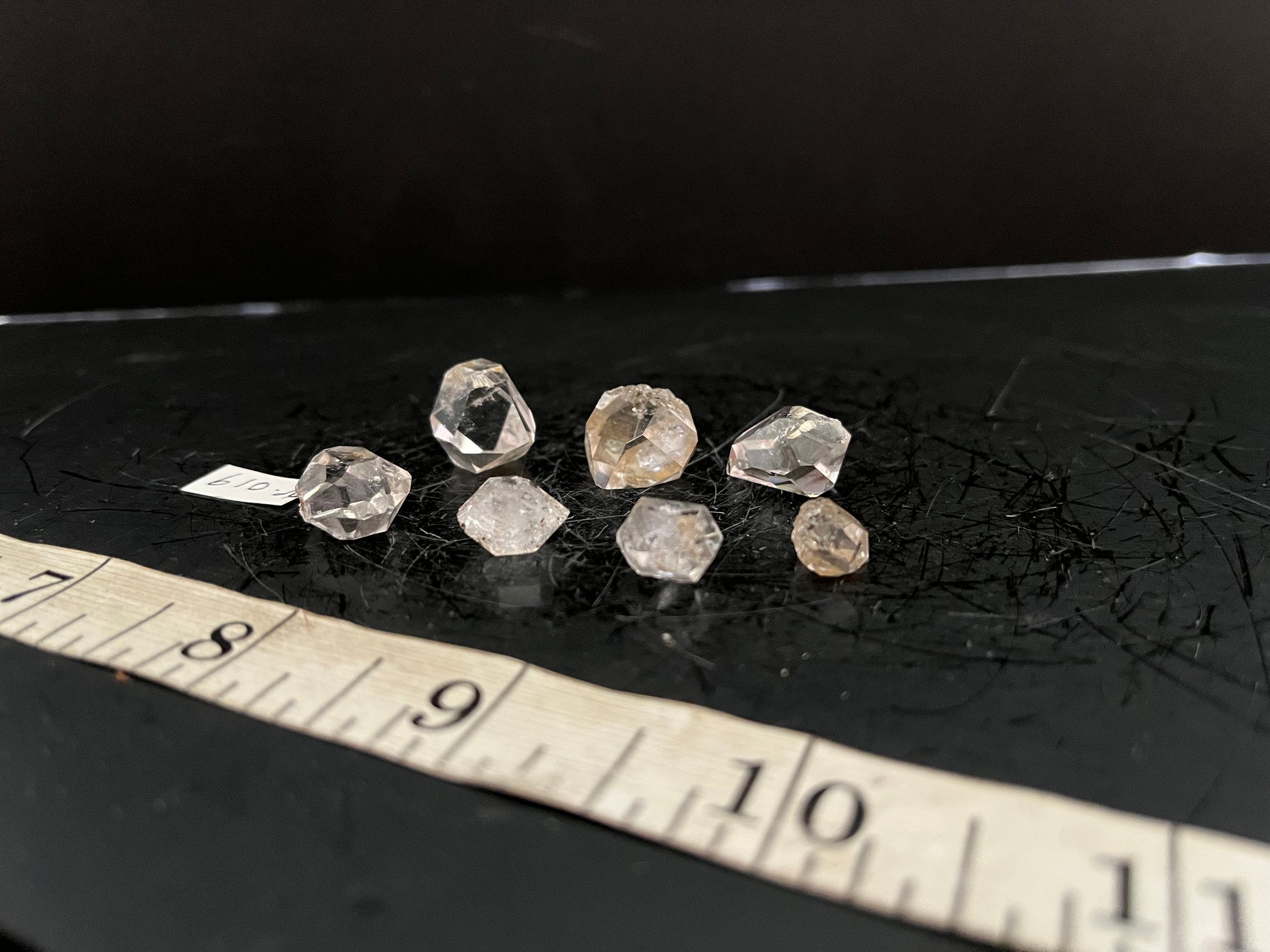 A diverse lot with drusy breakoffs, several double-terminated crystals, a few touchpoints, and some anthraxolite. A satisfactory assortment of 7 crystals.