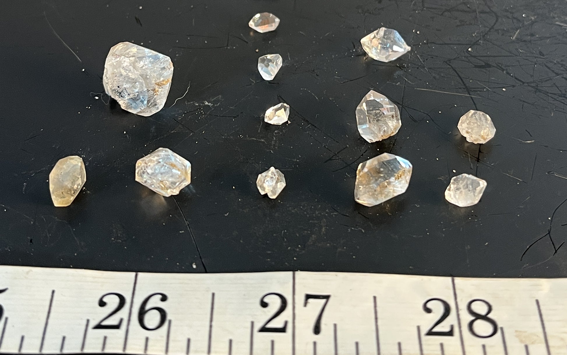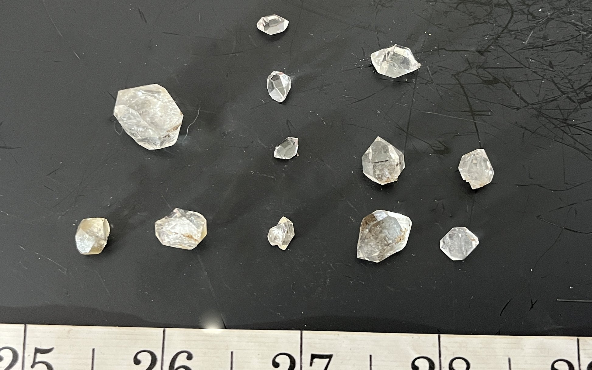 A small lot of double terminated Herkimer Diamond crystals, varying in size, shape, and clarity.