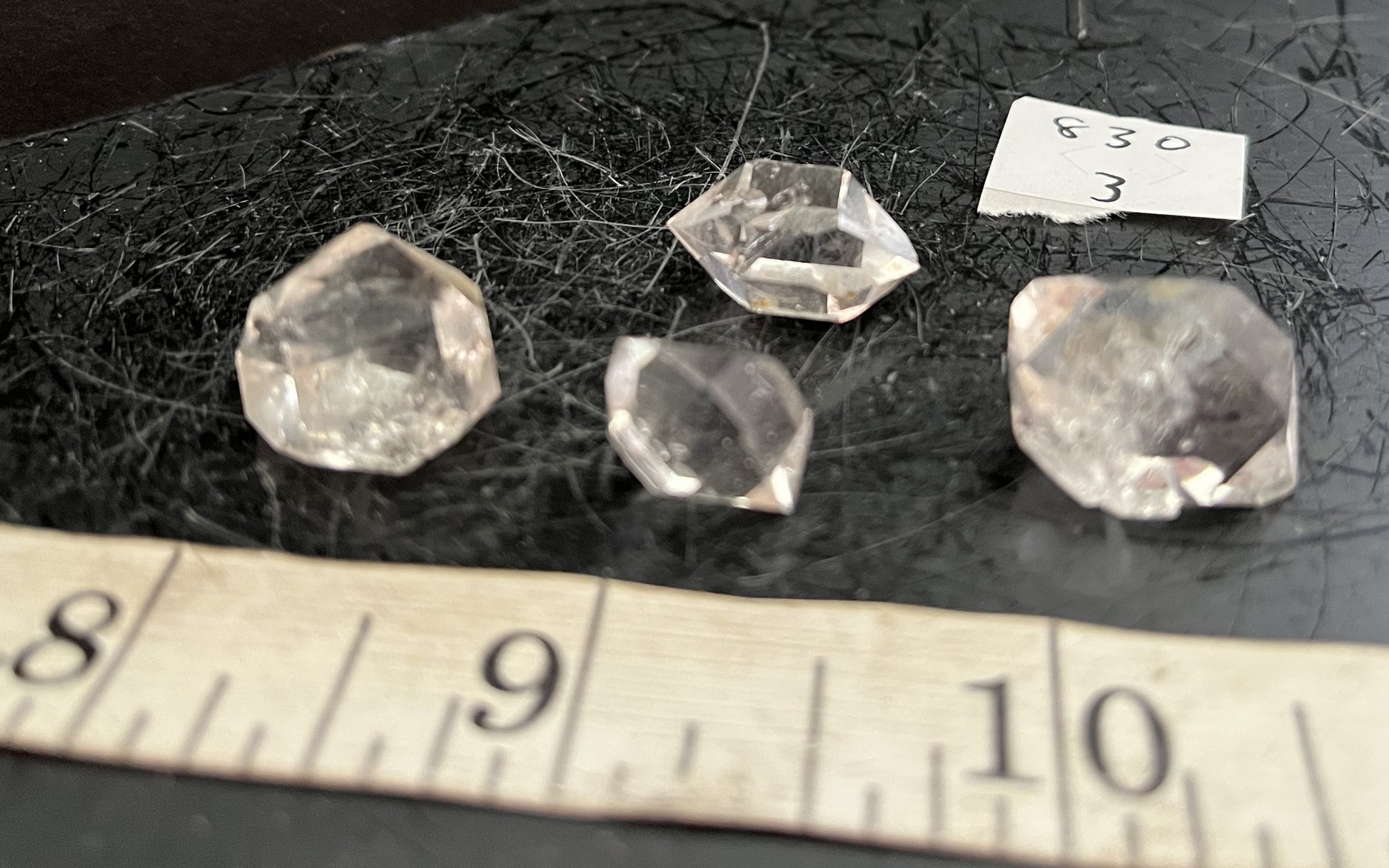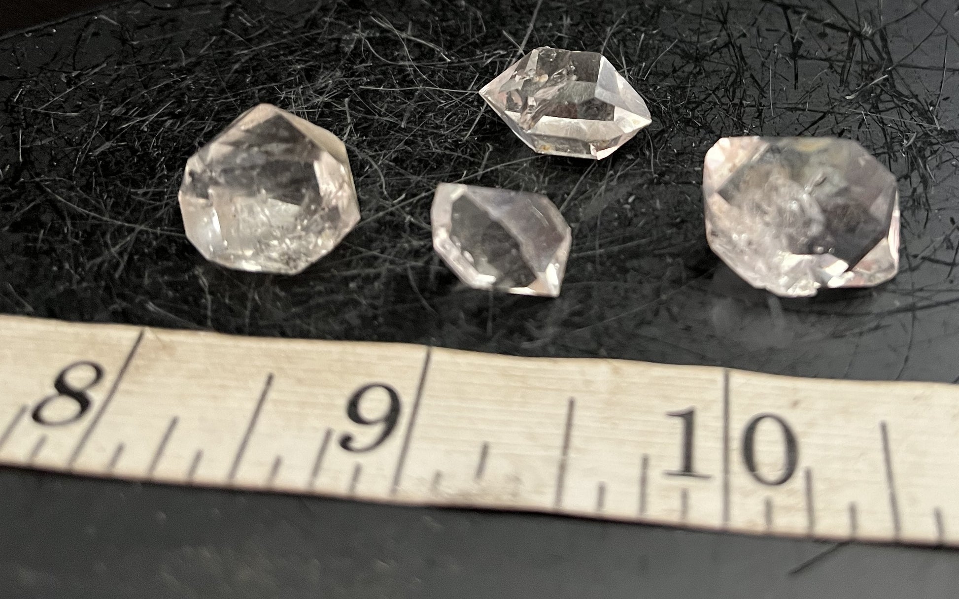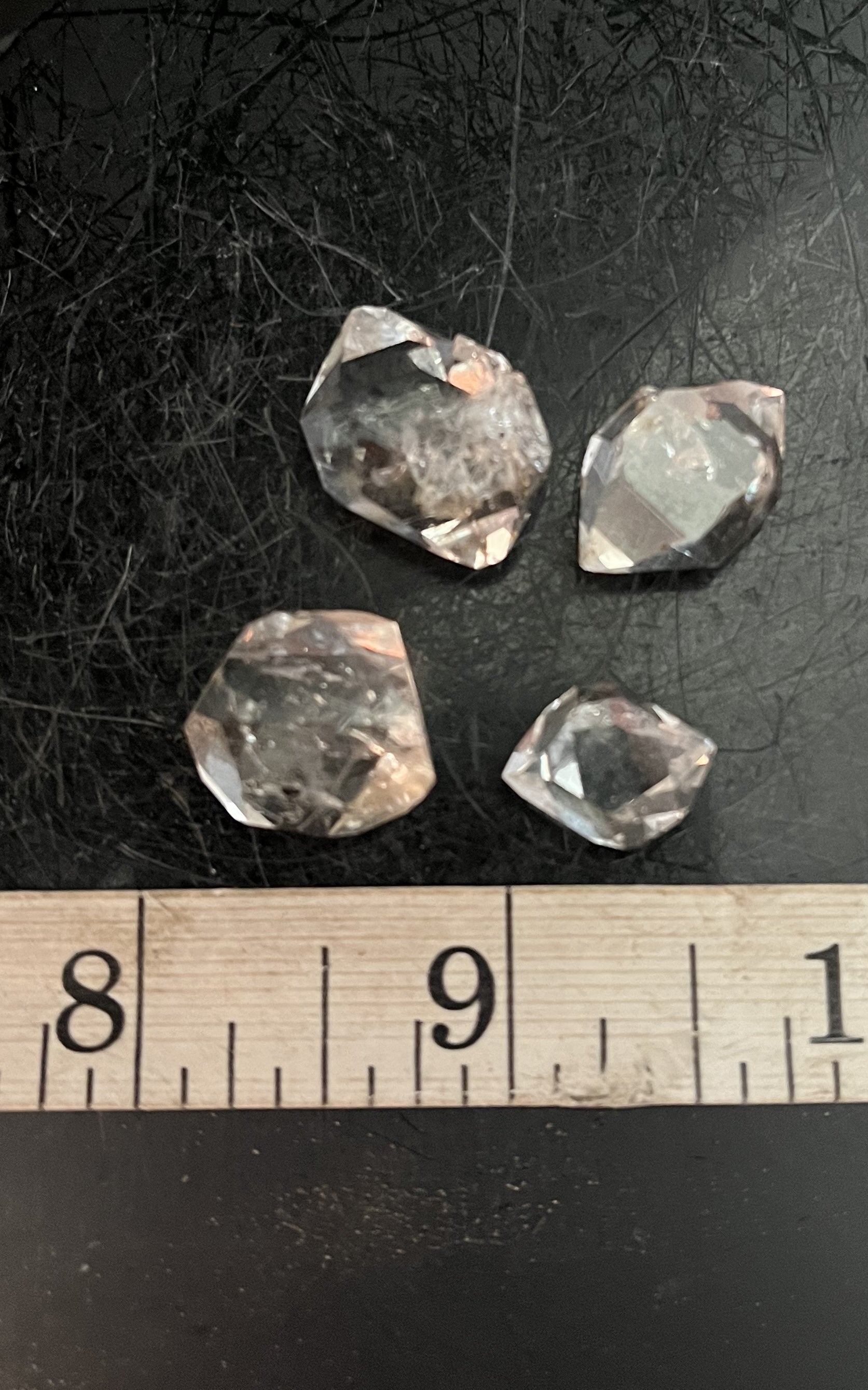 Four Herkimer Diamonds bundled together in Lot 830-3, boasting a few bubbles and anthraxolite inclusions for additional aesthetic beauty.