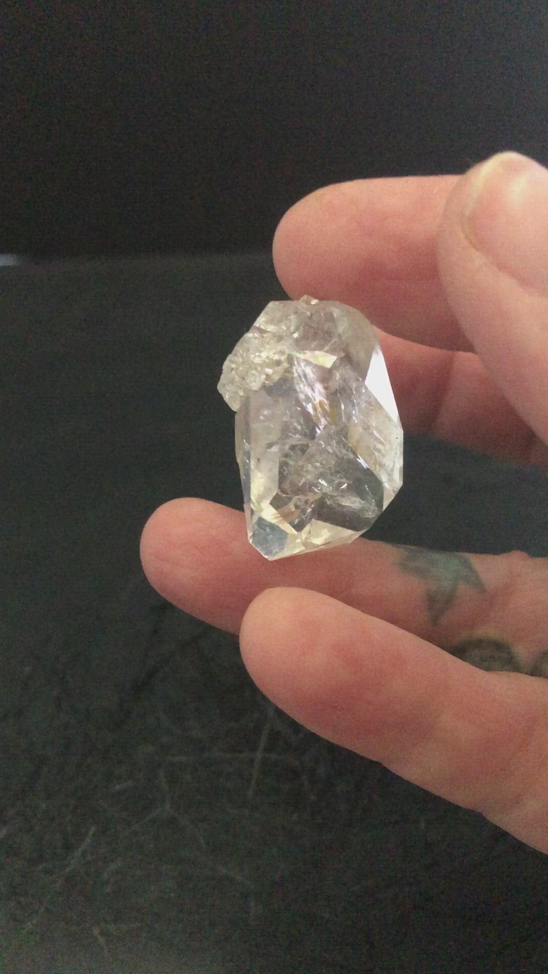 This cluster comes from an amazing drusy pocket we opened a few years ago. The clusters in this drusy pocket were all extremely cool shapes - remember every Herkimer has 18 faces! This one is remarkable in that it is perfect. .48 oz, approximately 1"