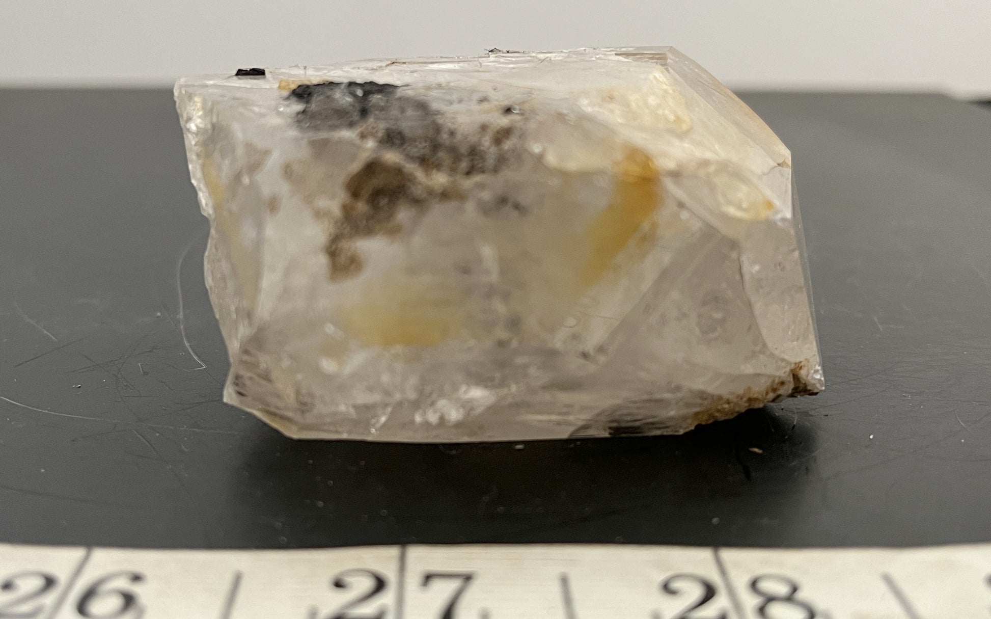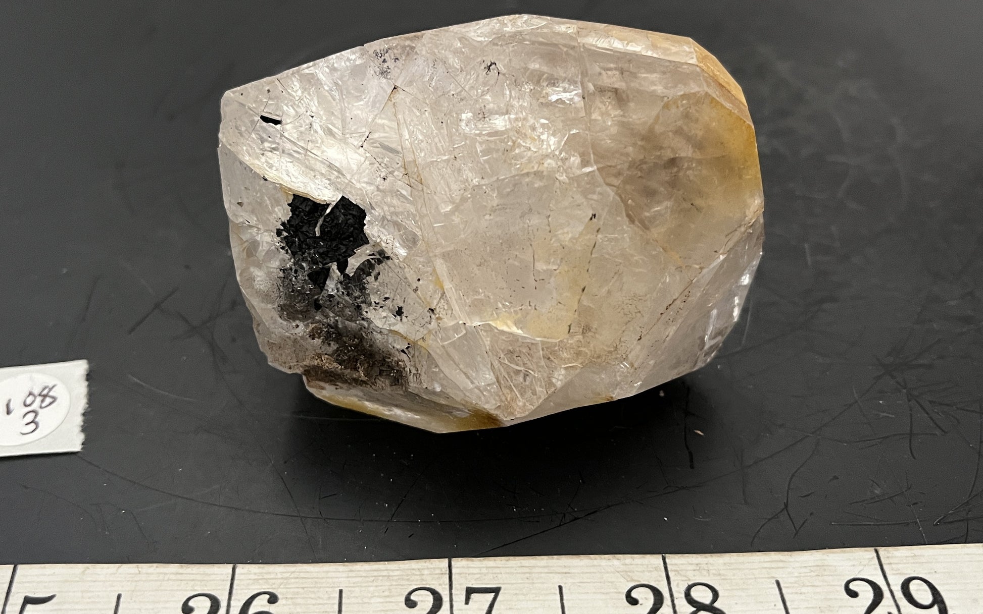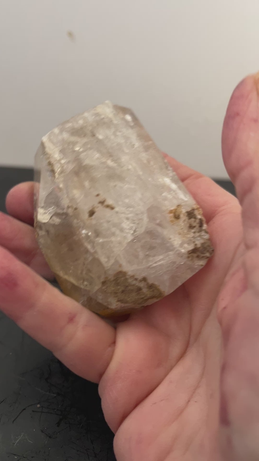We found a goonie in a 2023 drusy pocket, that held only goonies and no drusy. It's odd, but strange things happen. There are a few touchpoints and some anthraxolite. The bottom also shows the anthraxolite "etching". These pockets were very tight and packed with crumbly anthraxolite. It weighs 6.56 oz and measures 2.5" by 1".