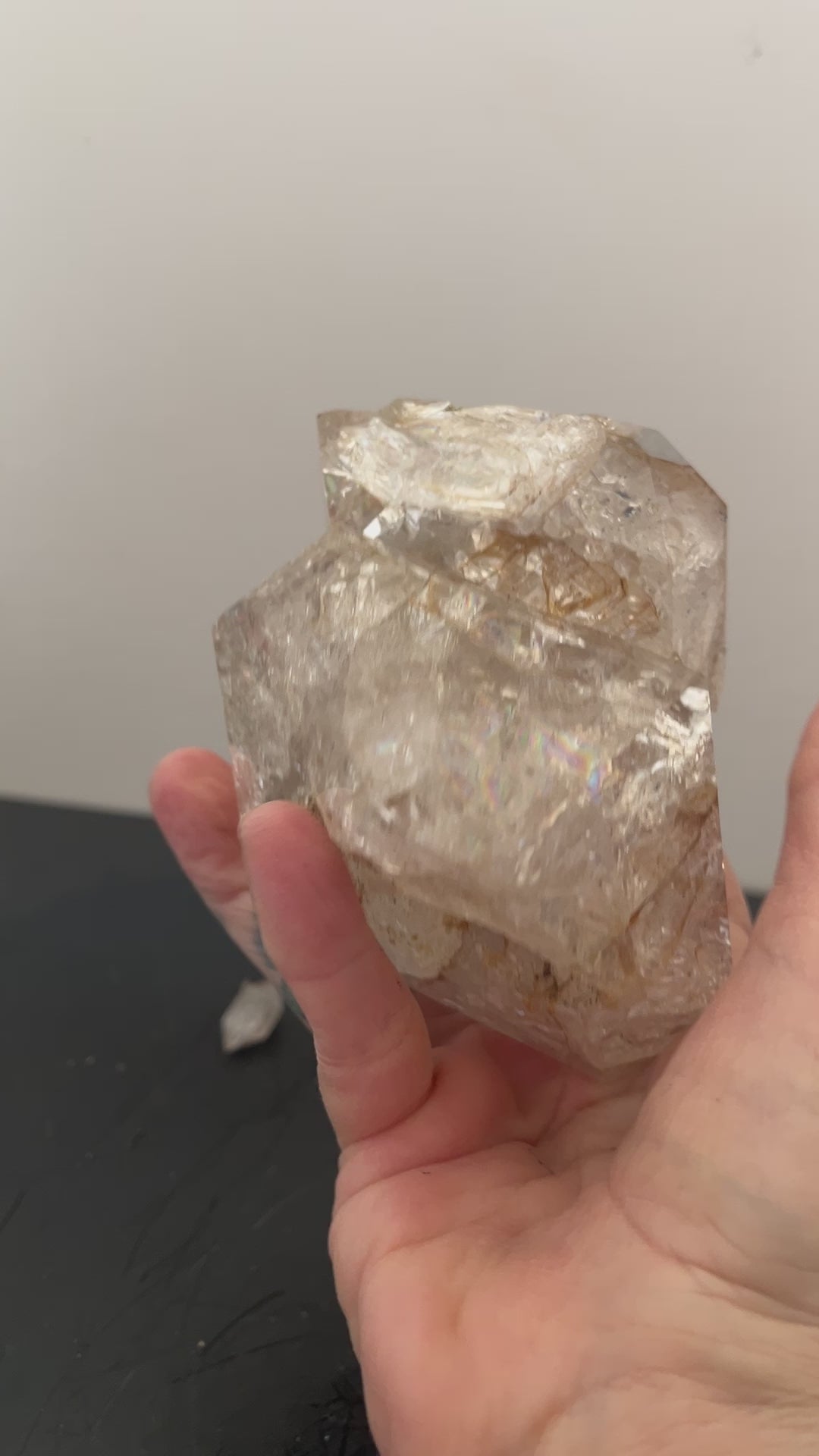 An original goonie cluster! This was not reconstructed, although the larger crystal has a keyhole for a matching orphan that was not found or crushed. Typical goonie bottom. It weighs in at 1.22 pounds and measures roughly 3.5" x 3.5" x 3".