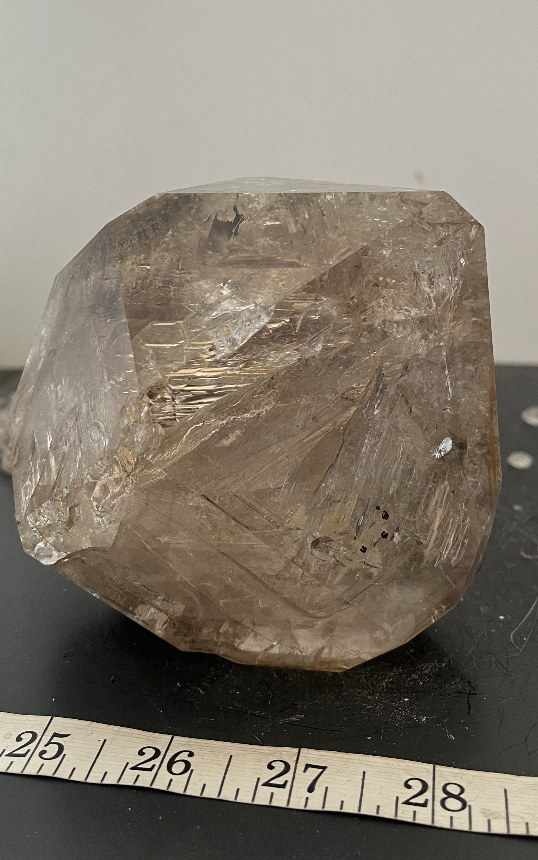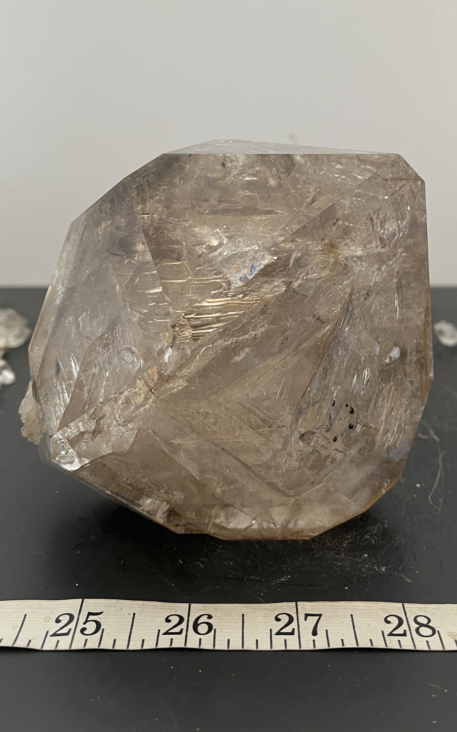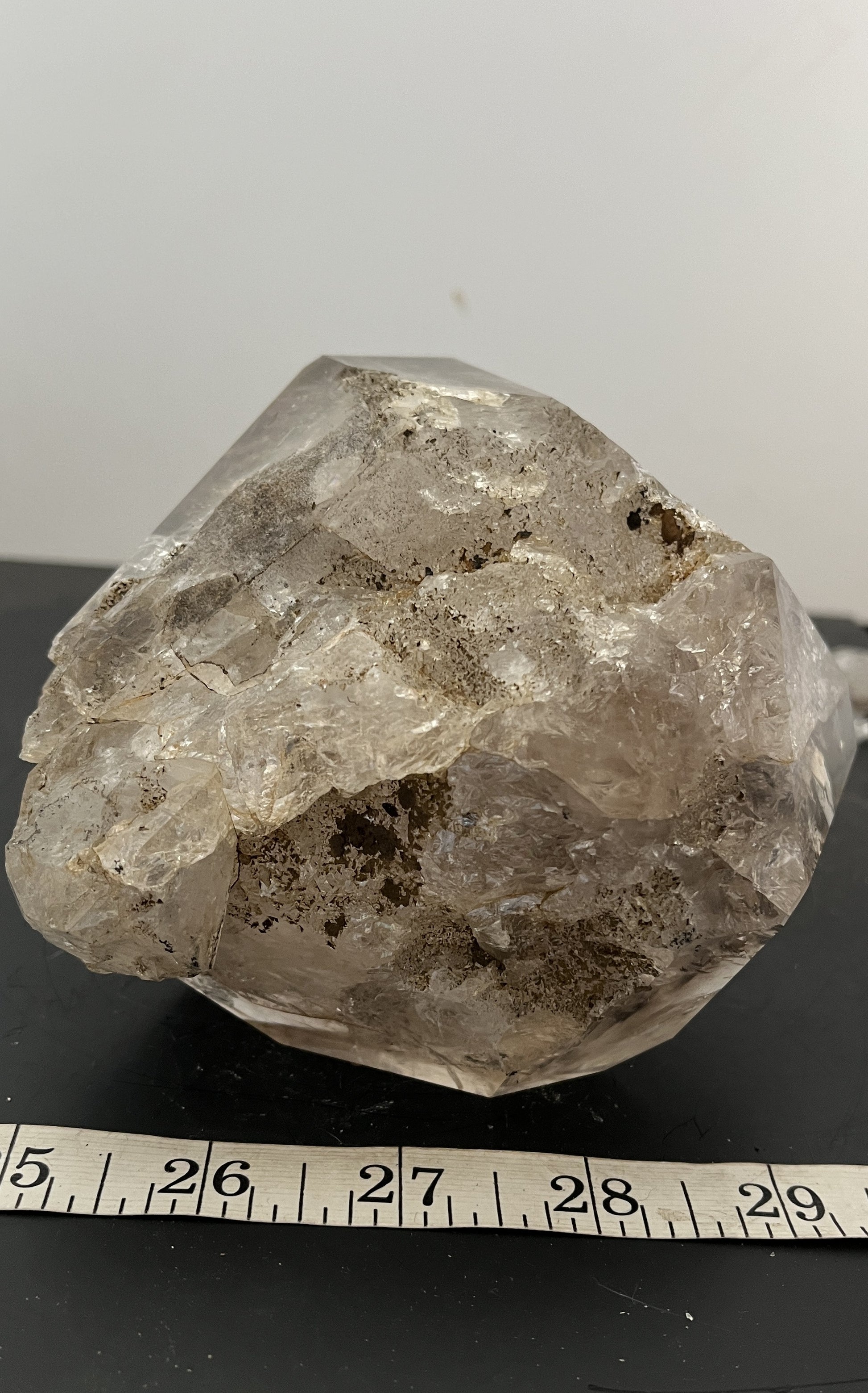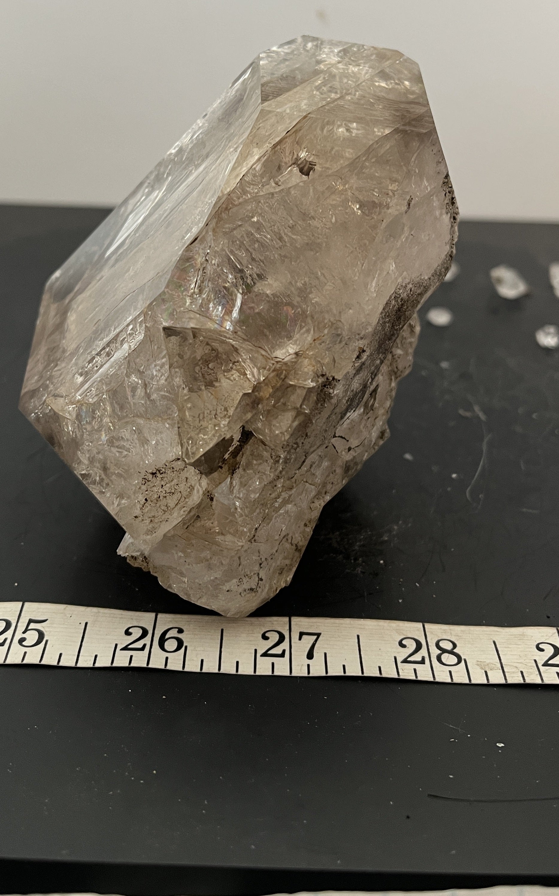 Oh My. An incredible example of a smoky goonie. A completely perfect termination and crisp, clean lines define the magnificence of this specimen. The typical goonie bottom contrasts and further accentuates its near perfection. A hair under 2.5 pounds and measuring roughly 5" x 4" x 3".