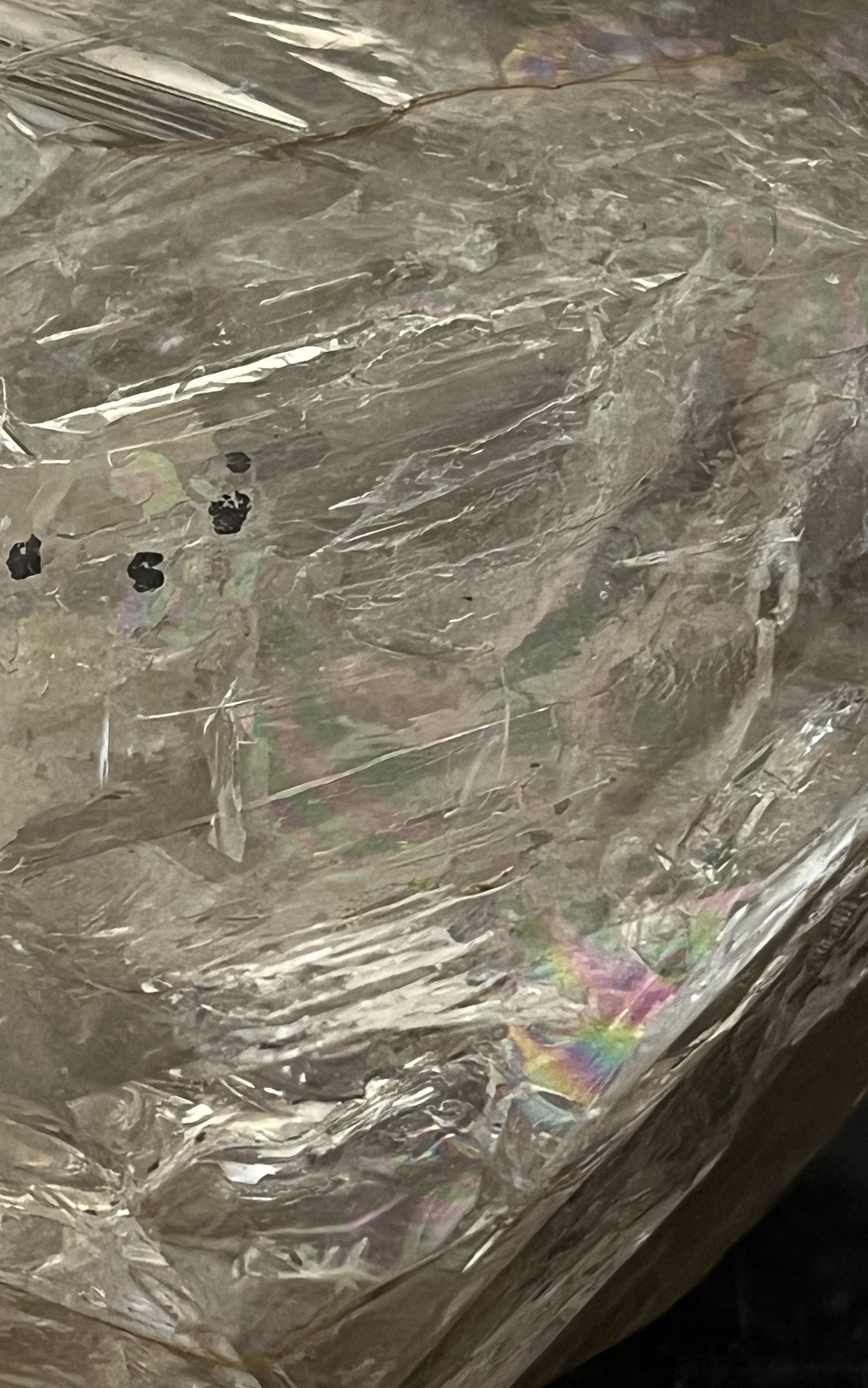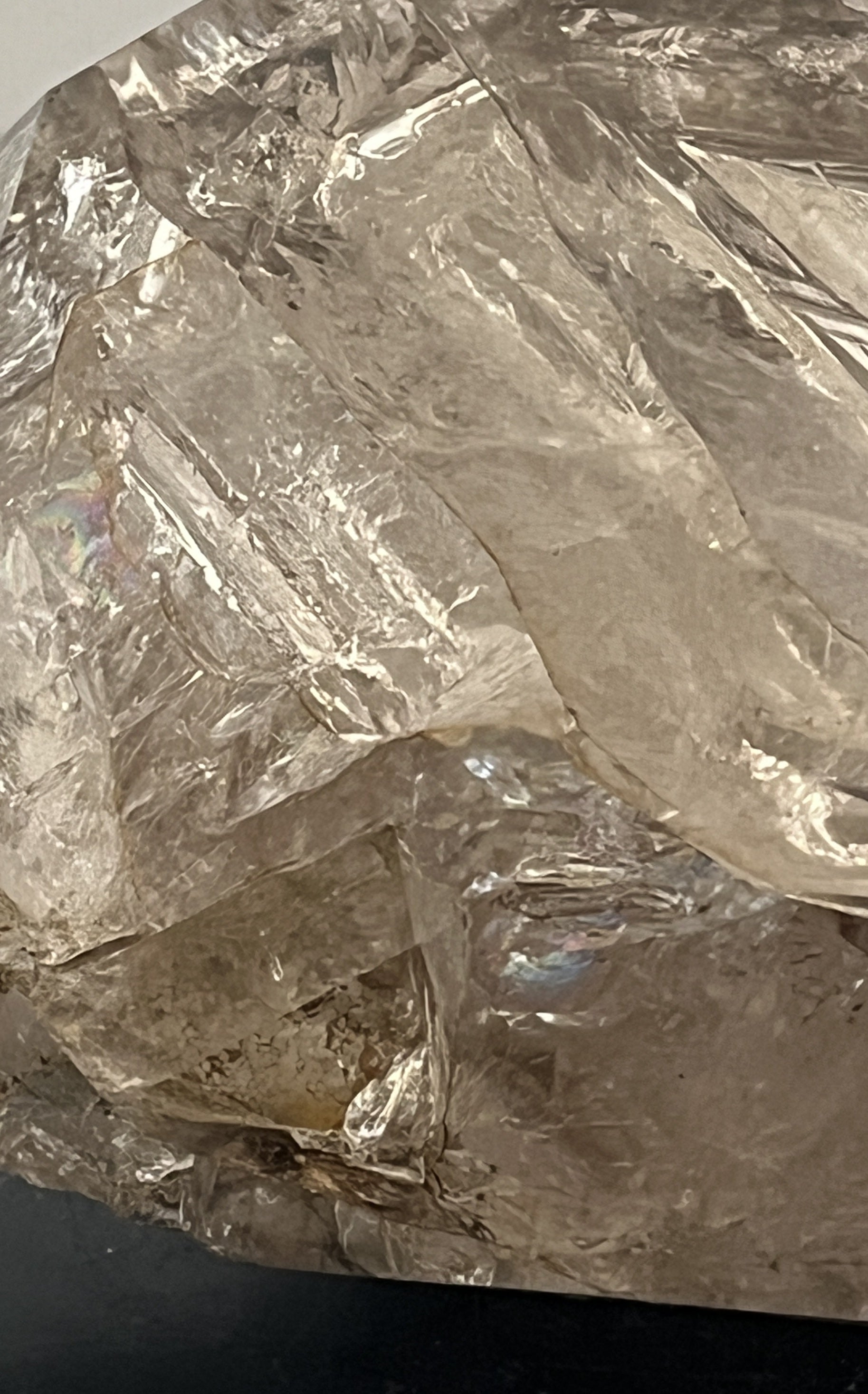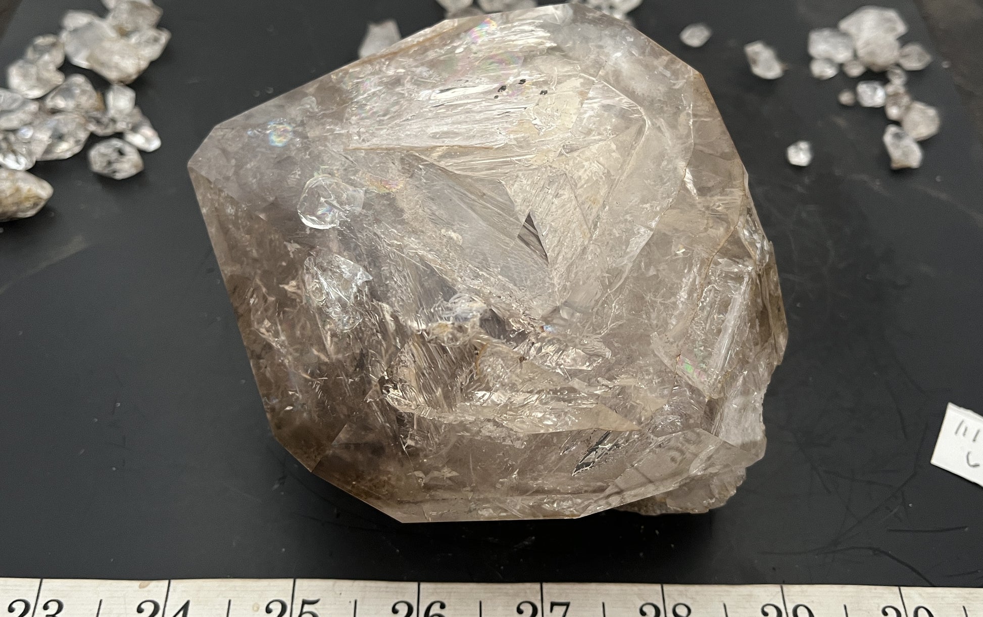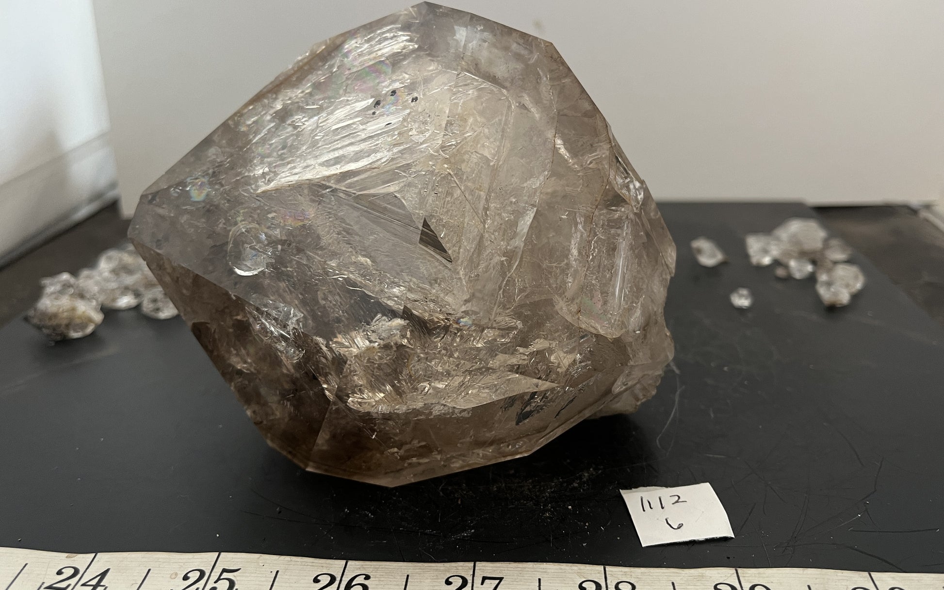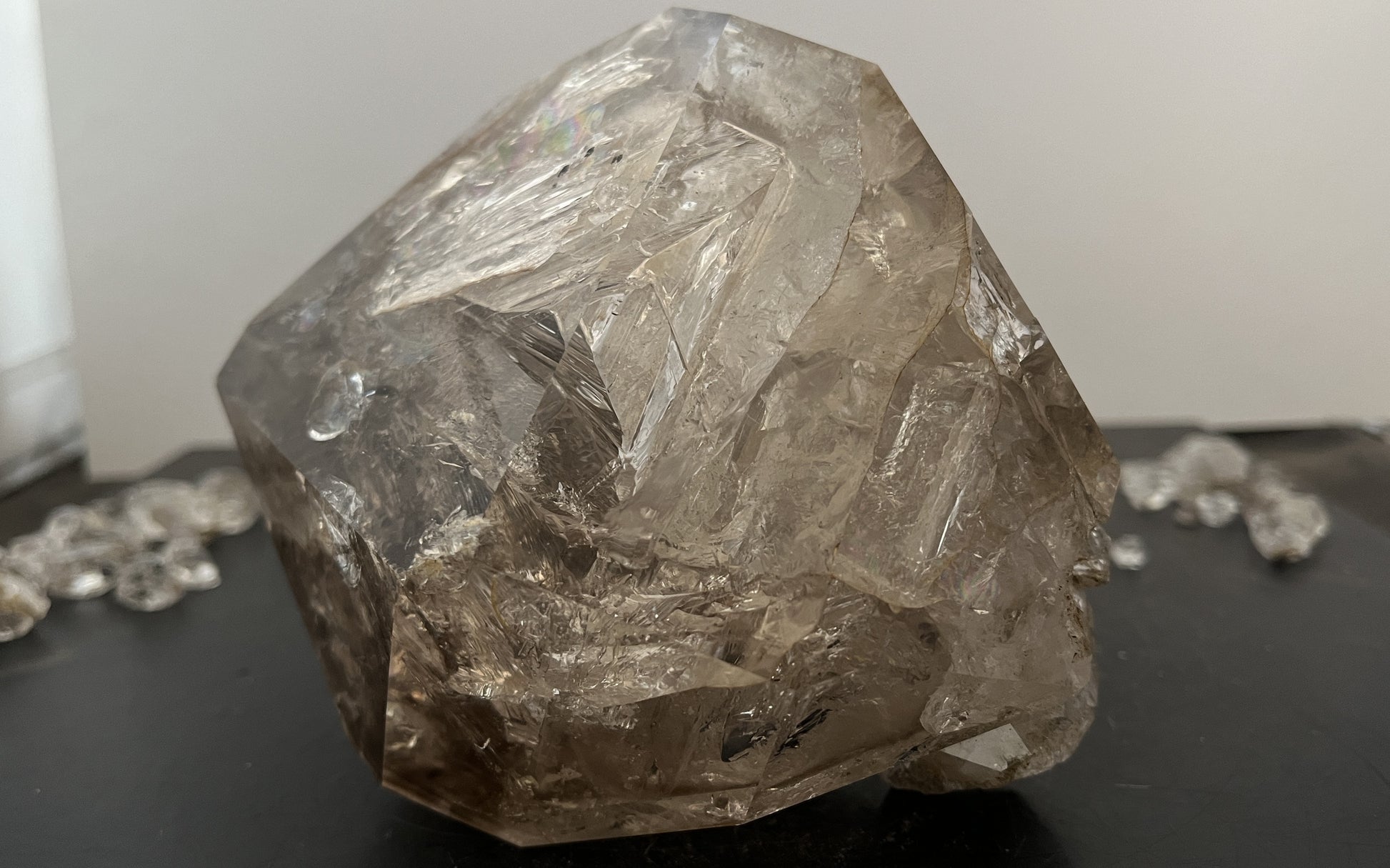 Oh My. An incredible example of a smoky goonie. A completely perfect termination and crisp, clean lines define the magnificence of this specimen. The typical goonie bottom contrasts and further accentuates its near perfection. A hair under 2.5 pounds and measuring roughly 5" x 4" x 3".