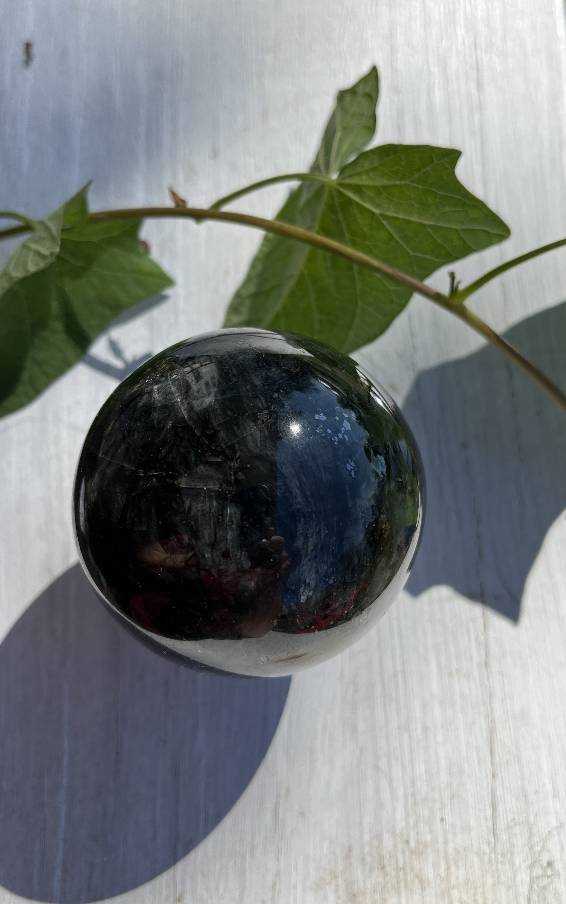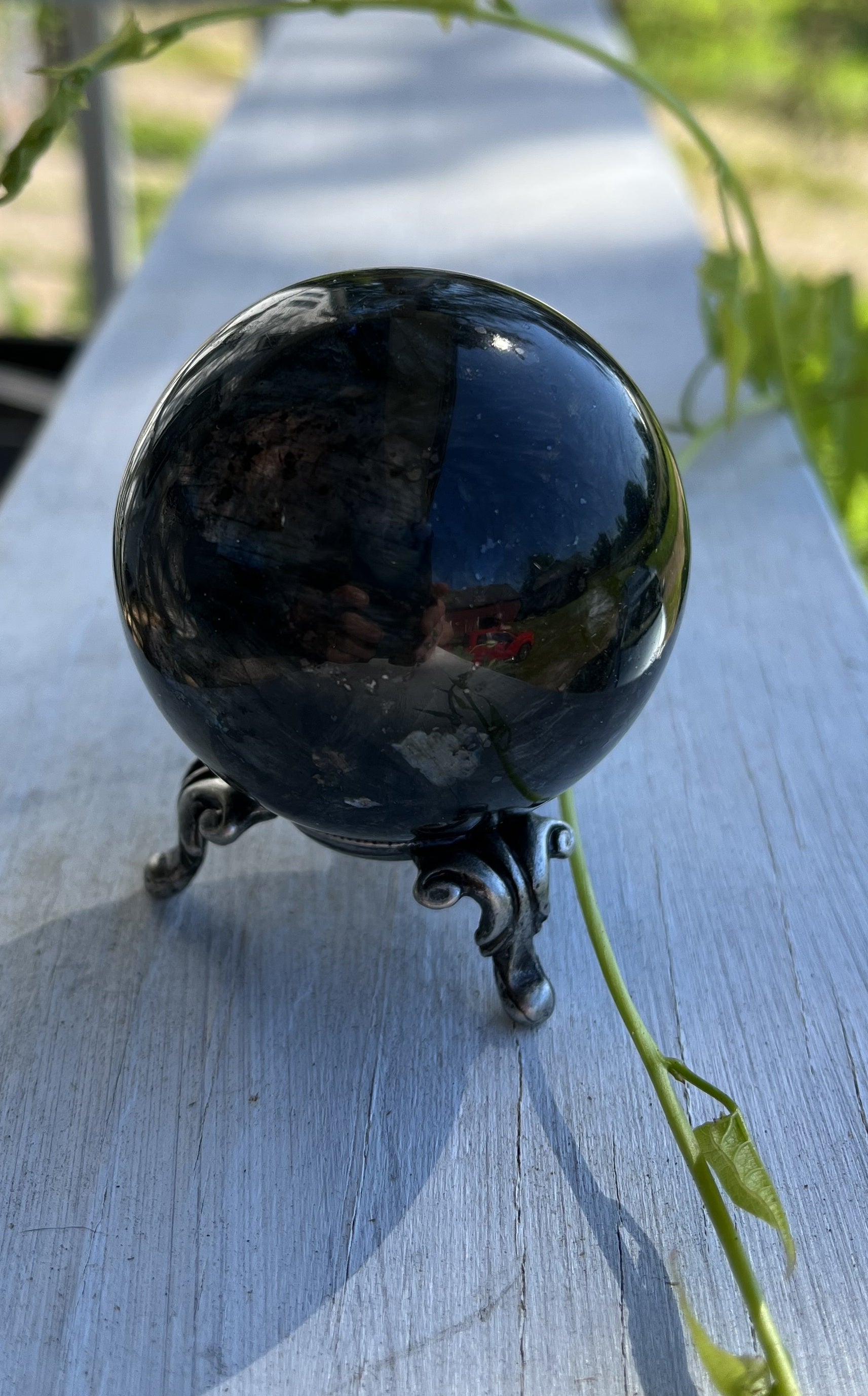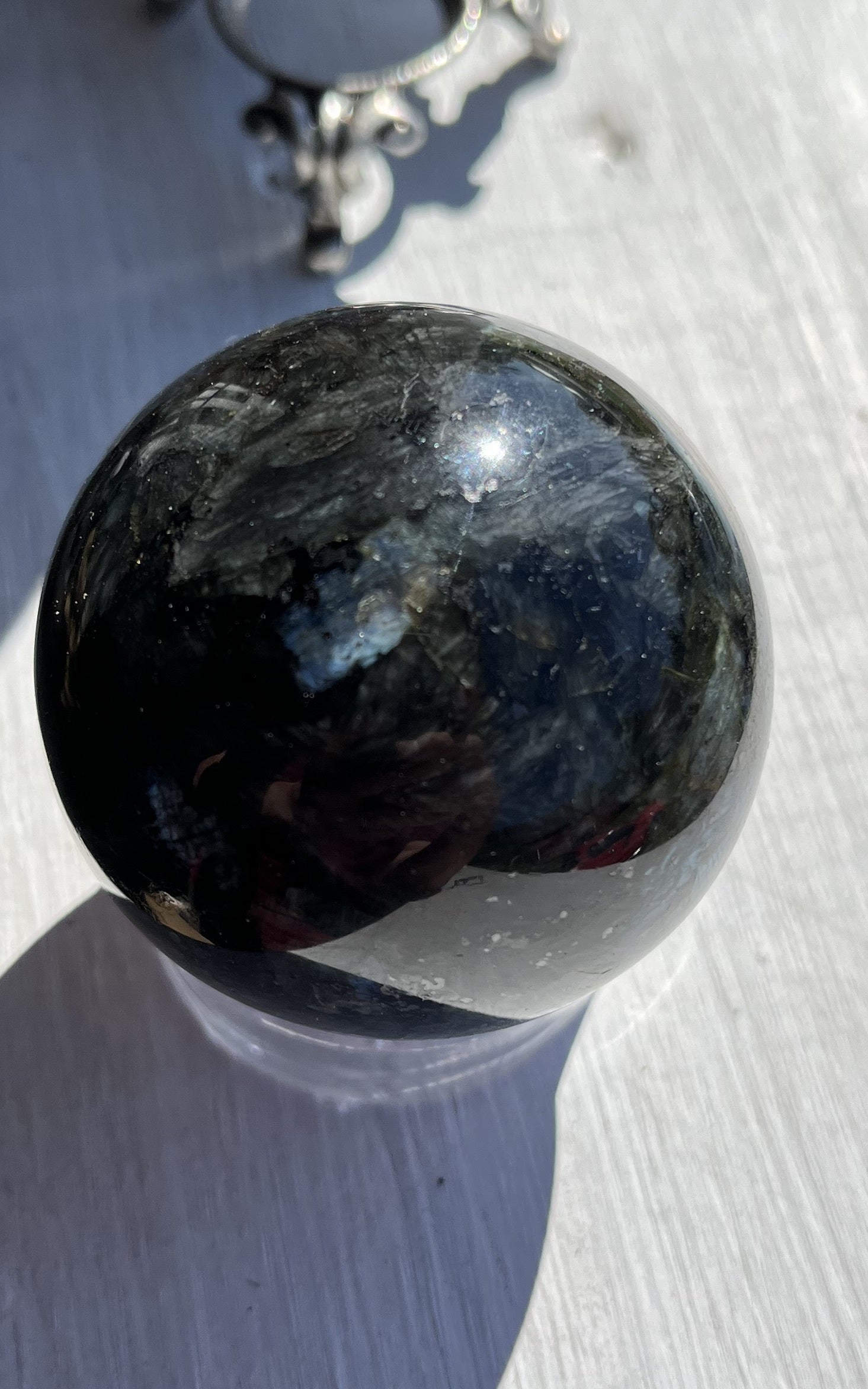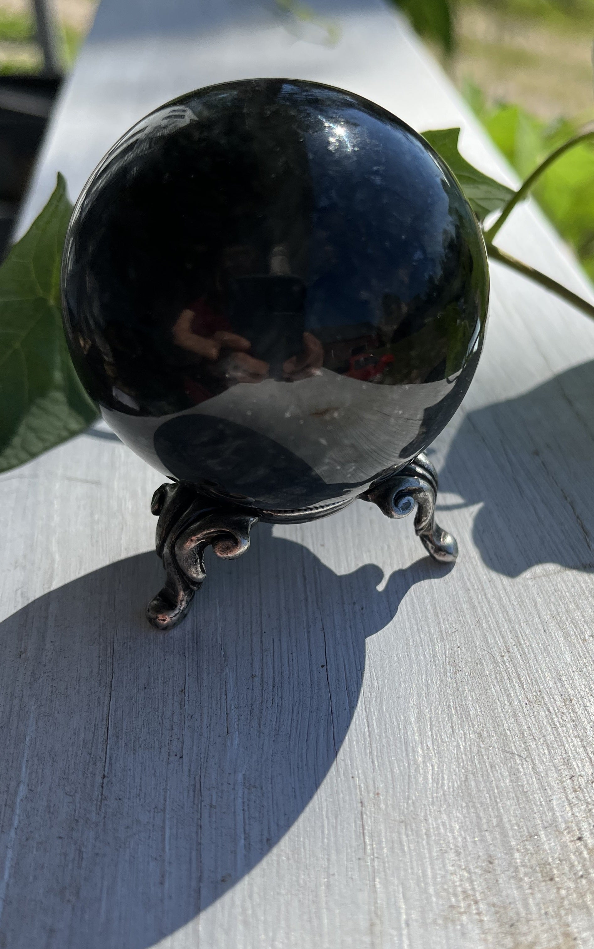 The sphere comes with a plain lucite stand, however, we offer pewter, agate, and wood stands.