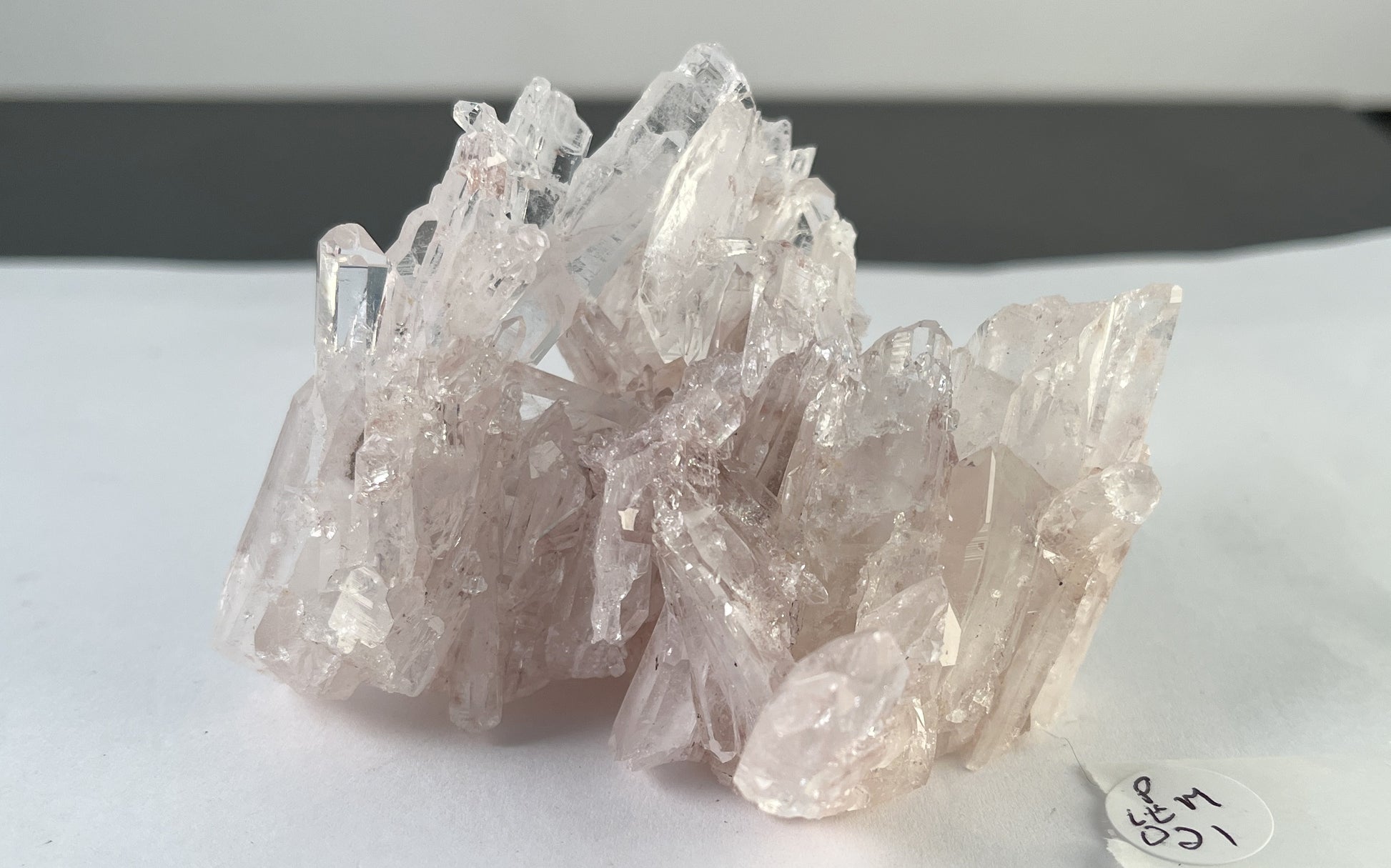 A stunning soft pink quartz from Columbia, mainly clusters that contain Lemurians, Fadens, tabbies, cathedrals, and curved crystals.