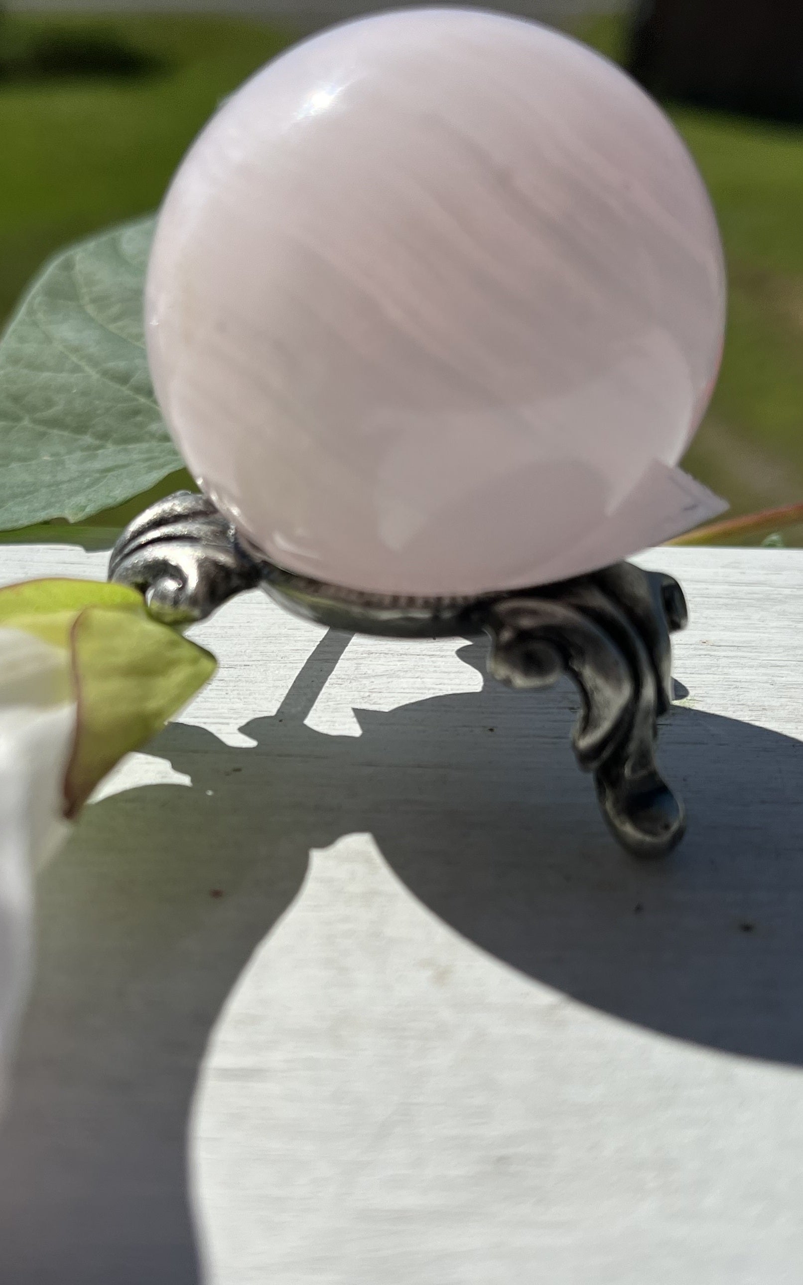 This sphere highlights the banded nature of calcite. Difficult to photograph, it has various shades and swirls. 1.5" 3.44 oz