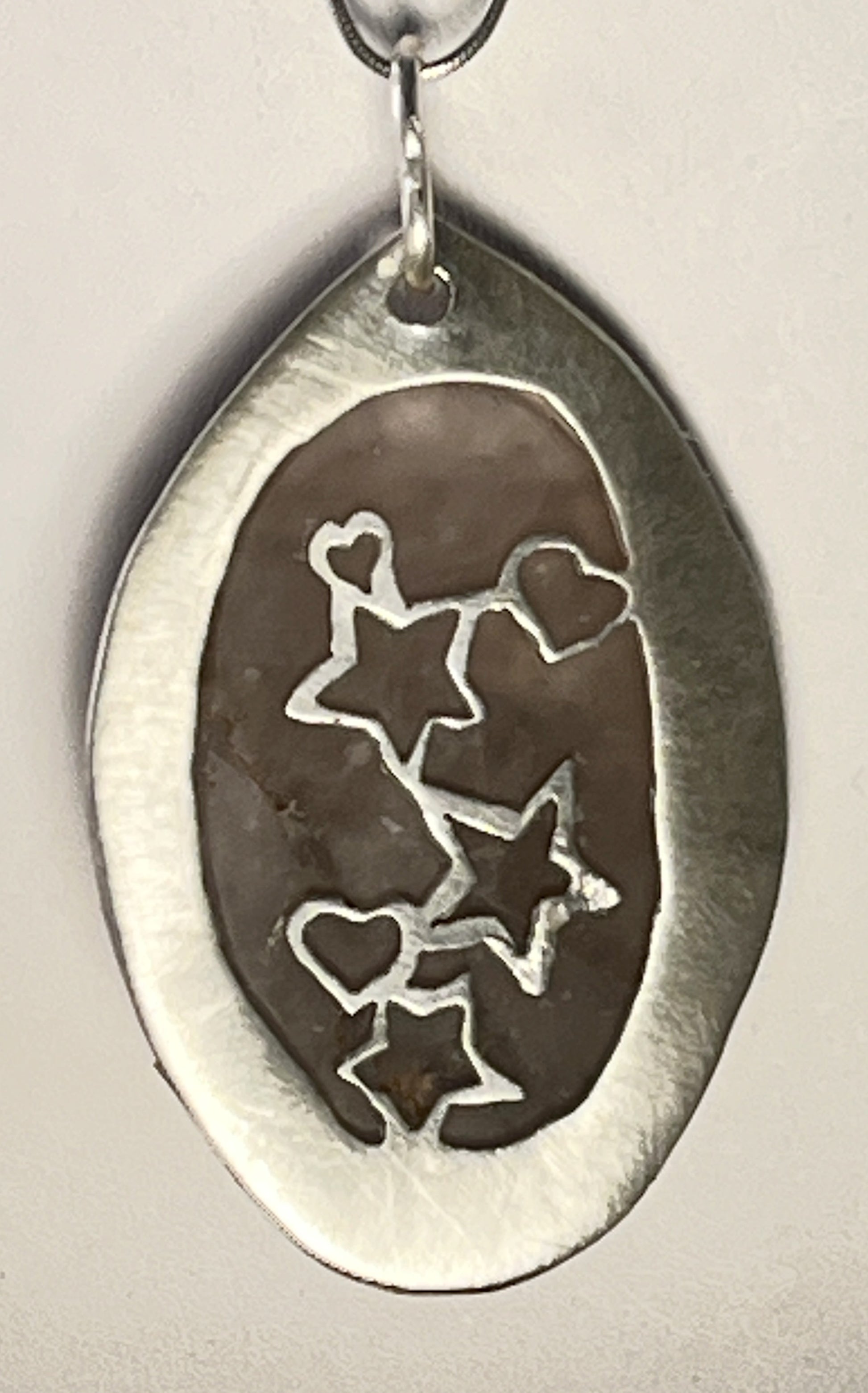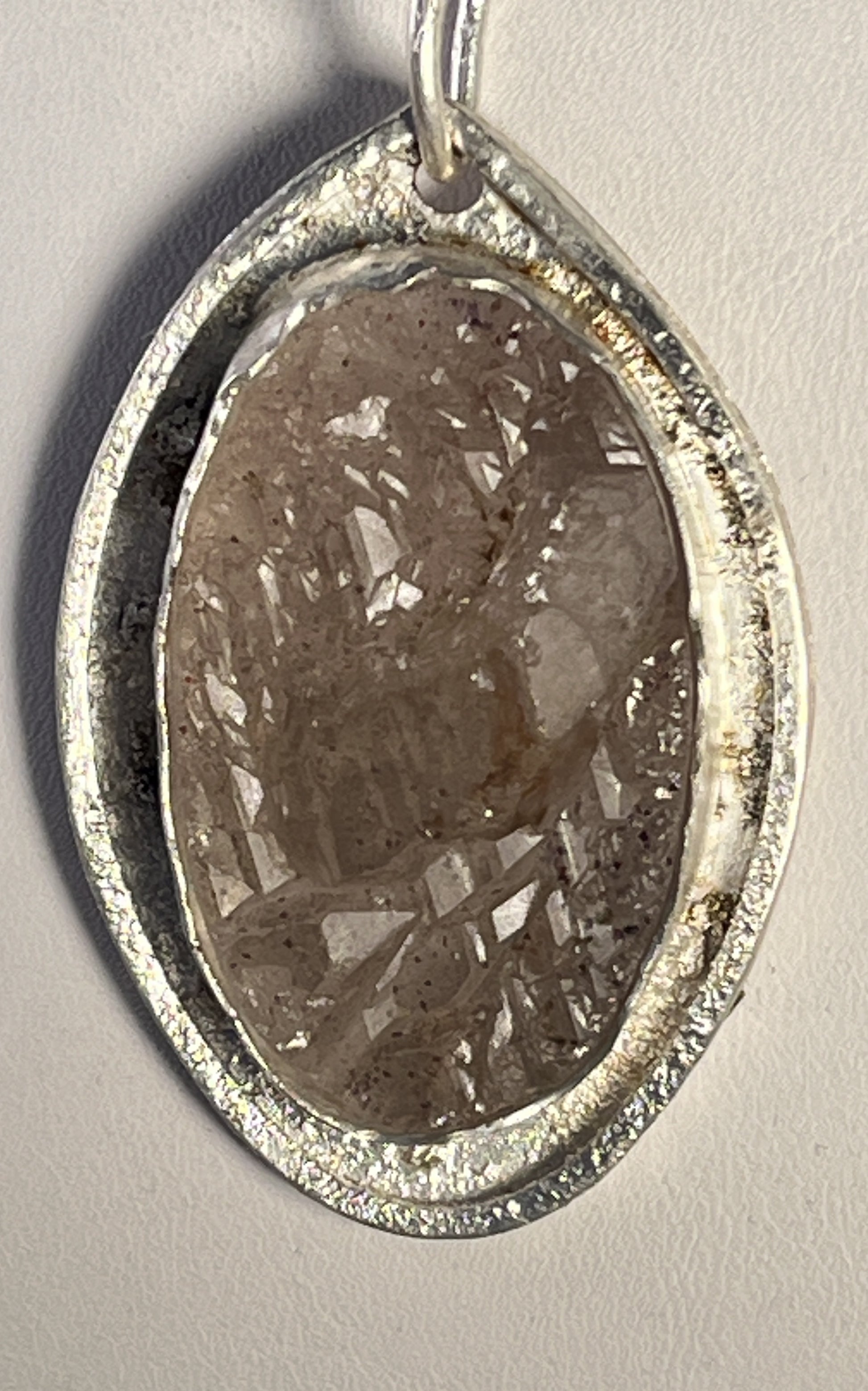 Elestial Quartz has a strong energy that can intensify intentions, promoting spiritual growth and healing. In addition, it can enhance intuition and emotional well-being, while also offering protection from negative energies. This pendant is designed with a bezel that follows the edges of the stone and is elegantly adorned with sparkling silver dust. The back is left smooth. The pendant measures 2.5" x 1.5" and comes with a sterling silver snake chain (16" - 24"). Use Elestial Quartz to gain insight into yourself and your life's purpose as you pursue your dreams and reach for the stars.