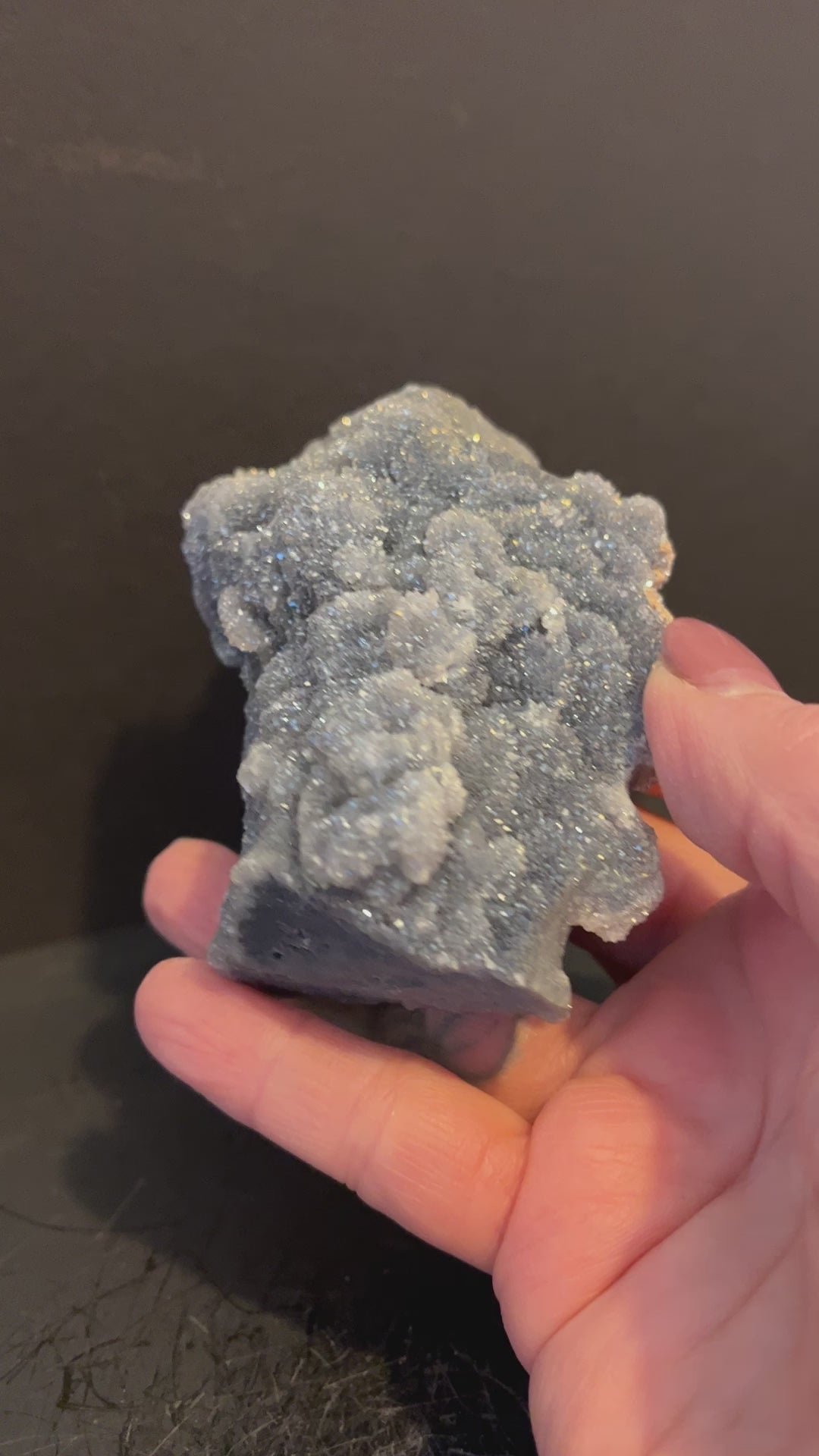 The Sphalerite is an impressive mineral specimen that features sparkly sphalerite crystal particles and twinkles in the light. Its unique combination of glimmer and twinkle makes the Sphalerite perfect for collectors or those looking to add an eye-catching display piece to their home. Weighs 249.6 grams and is 3.5" x 2.25"
