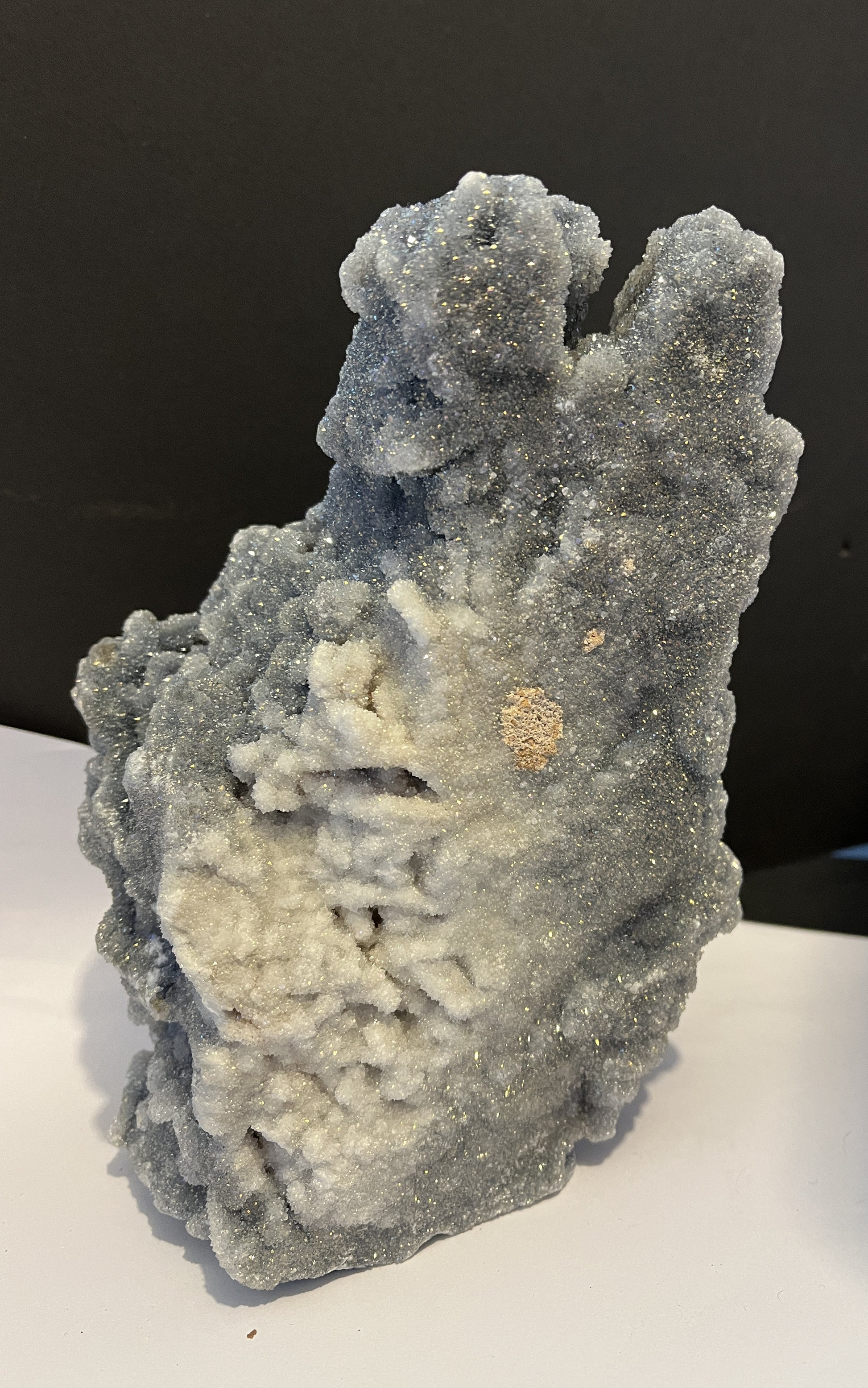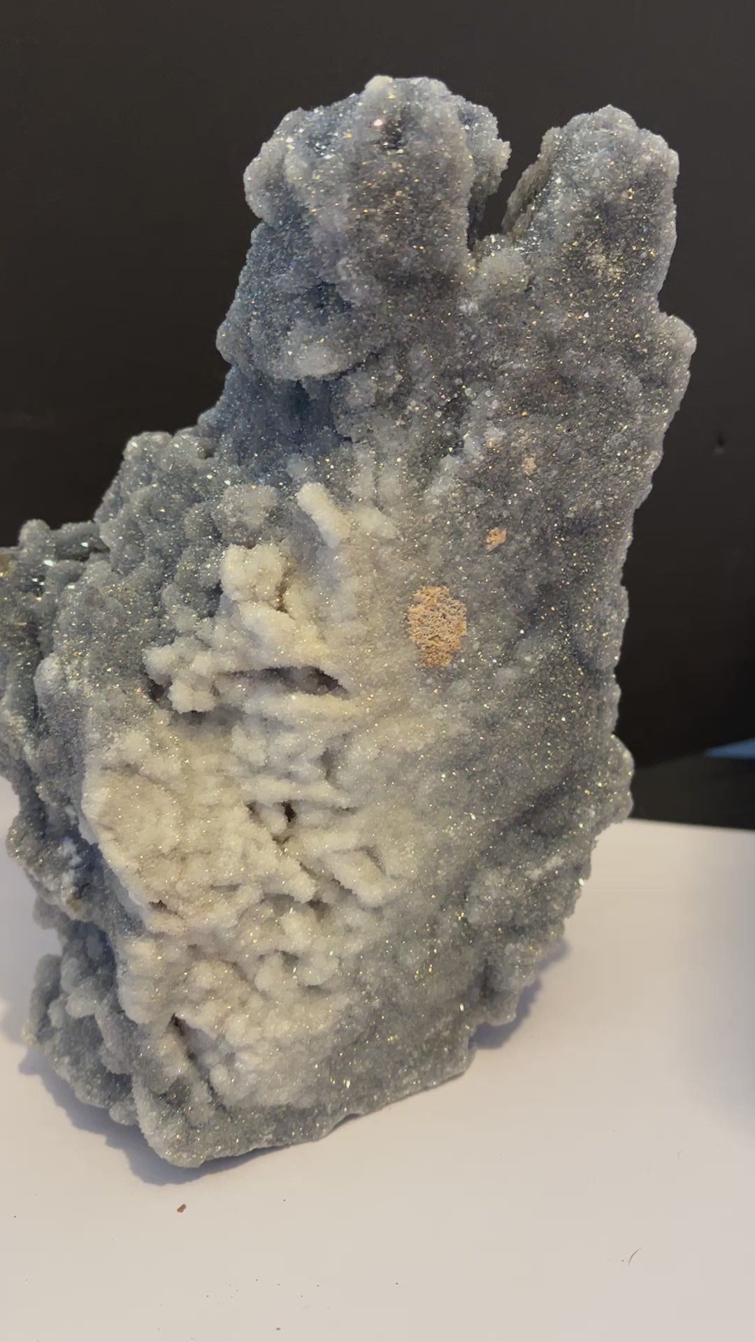 The Sphalerite is a noteworthy mineral specimen that showcases glittering sphalerite crystal fragments that blink when illuminated. Its exclusive mix of gleam and sparkle makes it great for collectors or those who desire an attractive decor piece for their abode. It has a weight of 3.83 lbs and measures 7" x 5.5".